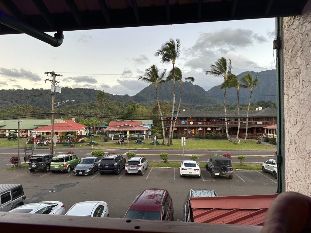 We’ve about come to the end of our visit to Kauai. On our last night we enjoy a fine dinner at the Terrace Restaurant in Hanalei. Here’s the view from our table: