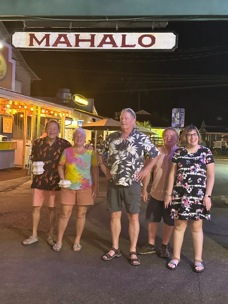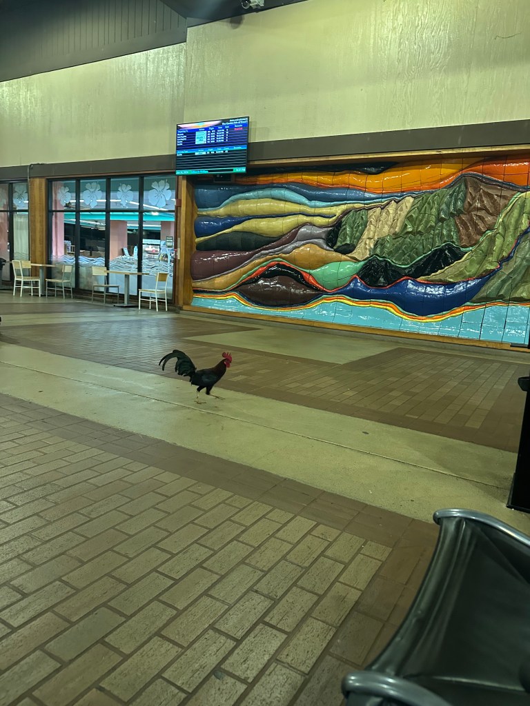 We’re pretty much silent through the hour drive to the airport, dropping off the rental car, riding the shuttle to the airport entrance, when Megan blurts out, “Hey, look at that rooster!” We all share a laugh over seeing one last feral rooster by the front entrance to the airport terminal.