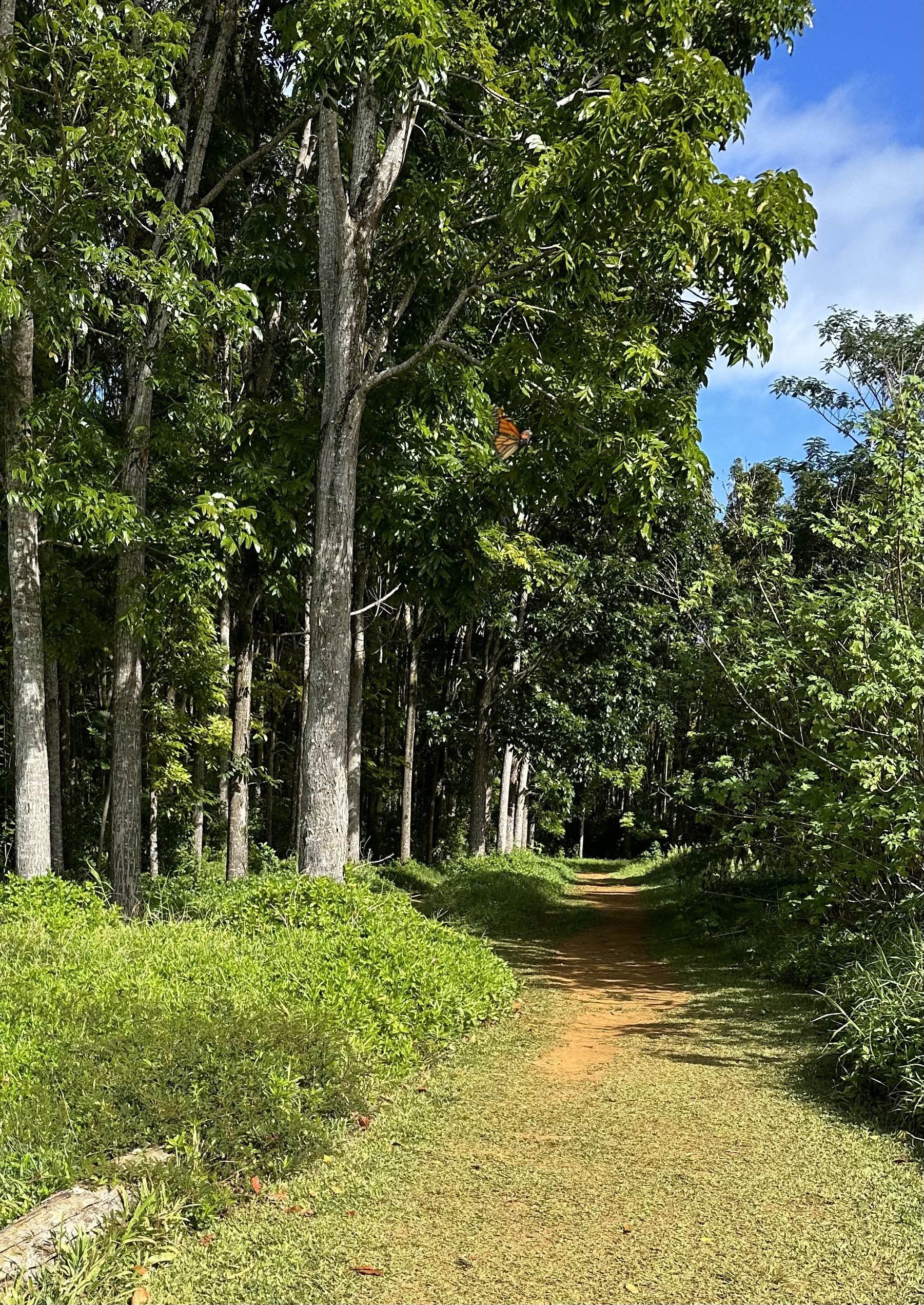 There are so many beautiful hikes in Kauai. As you explore the lush landscapes, navigating sometimes steep, muddy trails, dodging tree roots, ducking your head under hanging tree limbs, hopping over rocks to forge streams, listening to exotic birds, mesmerized by the tropical scenery, you might miss something. As you gaze at a tree branch, there might be a wonderful little creature staring right at you that you don’t even see. For example, dear reader, we are now on a hike overlooking Larsen’s beach. Do you see anything in the sand below?