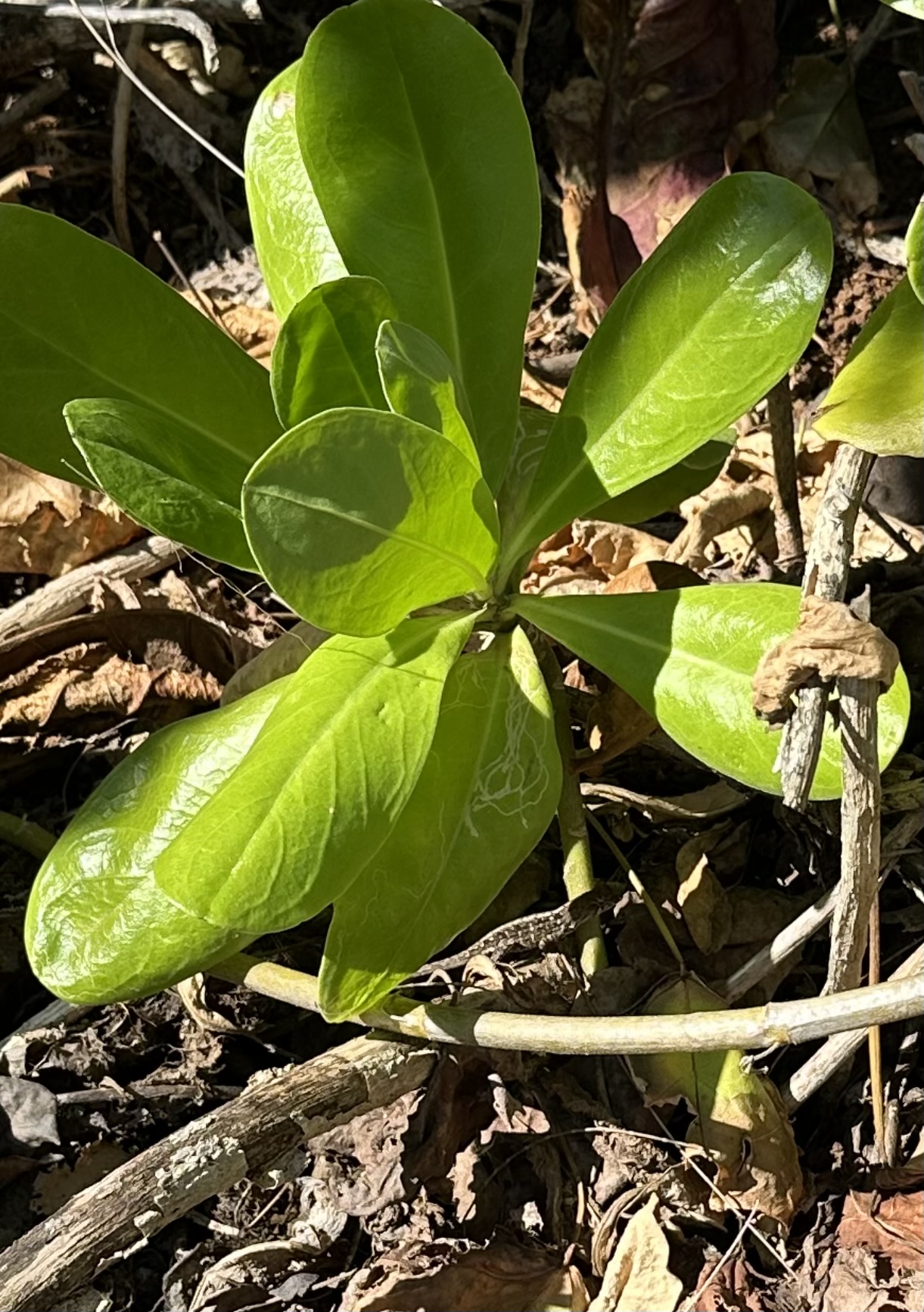 Of course not! you say. Look just above center in the photo right under that middle leaf structure. Still don’t see it? Here I’ve zoomed in:
