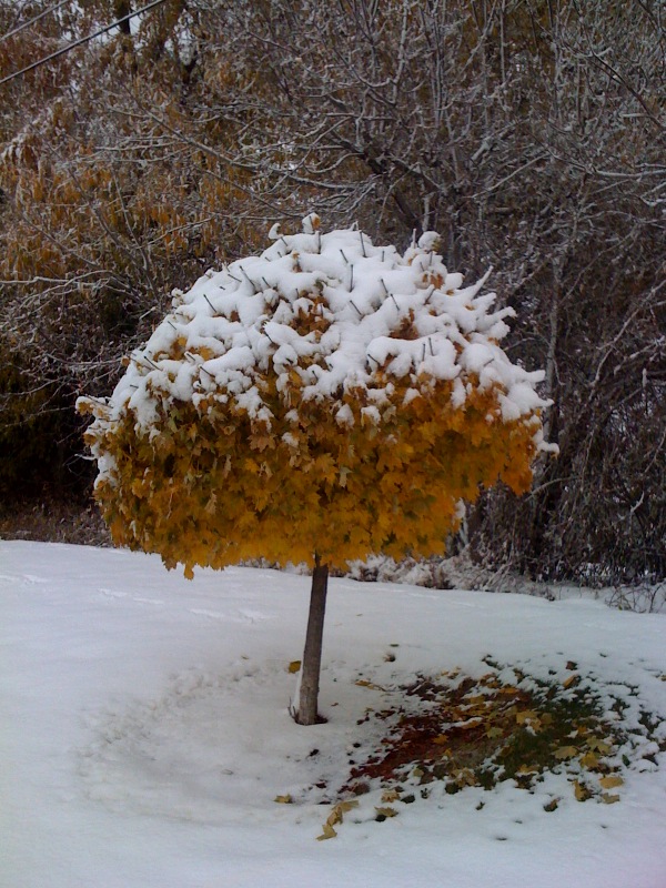 Some trees seemed more jolted by the snow, and unprepared, than we were.