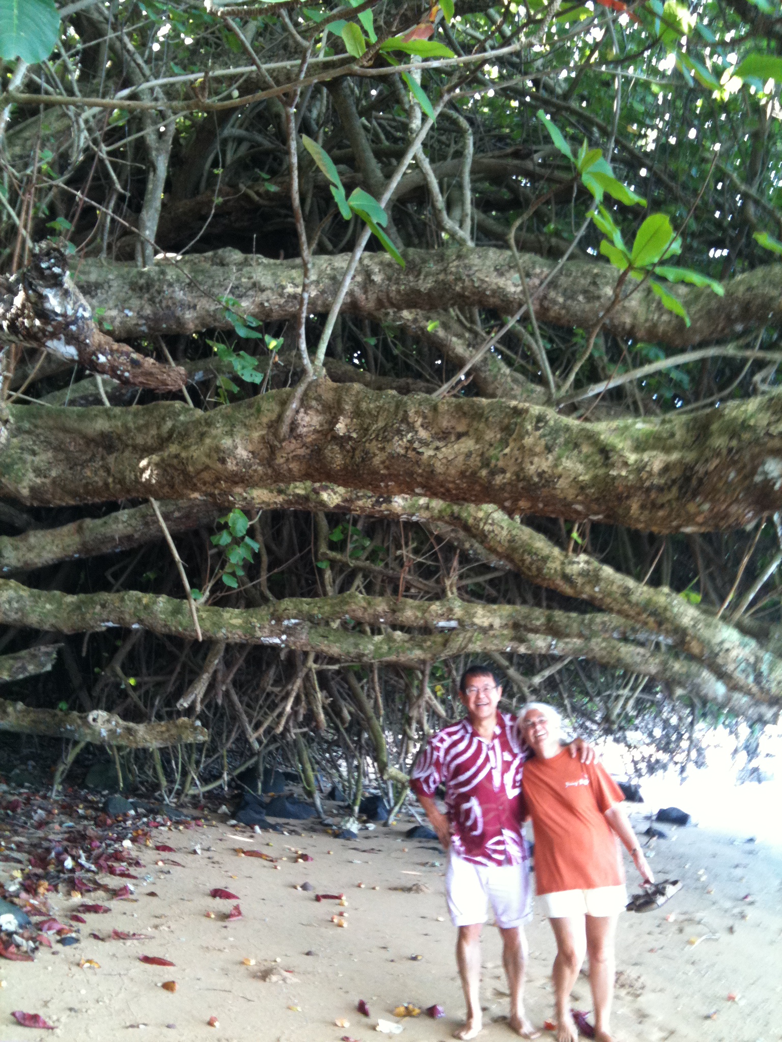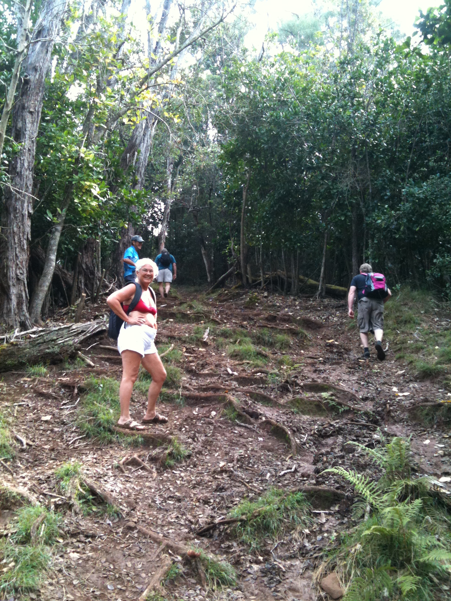 Eric spent much of his spare time poring over the Kauai travel book for trails and other such natural phenomena we could explore. He was the youngest of the bunch, and clearly in his element in the wilds, a mountain goat by mental and physical nature. We are not. We warned him against setting us off on trail hikes that turn into potential death marches. We made SURE to calculate the total distance of each hike – which, for example, if it’s 8 miles to the destination (hidden waterfall or something) and the route description does not contain the word ‘loop’ then it’s a 16-mile hike.