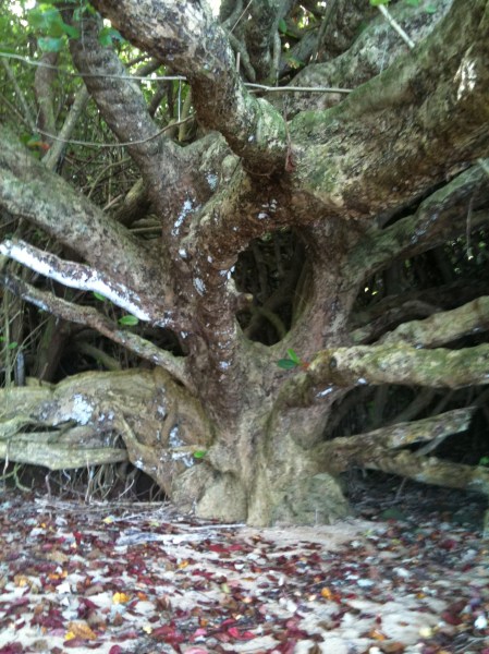 all relaxed and smiley-faced and having fun when maybe you should scramble out from under those morphed mutant tree limbs with roots gone wild (or are they tentacles?). Maybe you oughta be all wary and creeped out lest those limbs…hey, wait a minute, didn’t I say we were in Paradise?