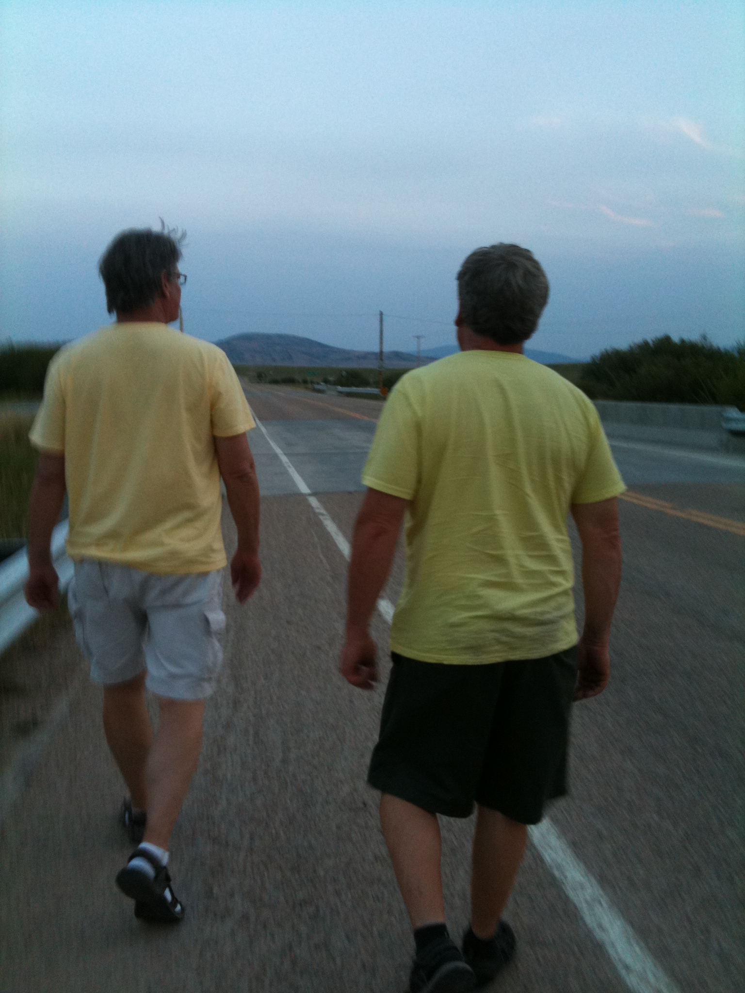 Megan and I are out on a walk in Jackson, Montana, with the “Bingo-bros”- in their matching ‘bingo’ yellow t-shirts.