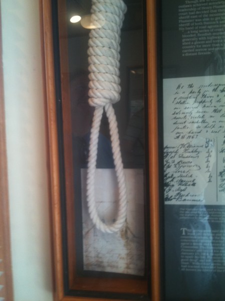 Well, that about puts a wrap on our day. Even though we were confronted with a ghost town, the gallows, another near-ghost town, and Eric’s demented t-shirt, at least we were spared a death march.