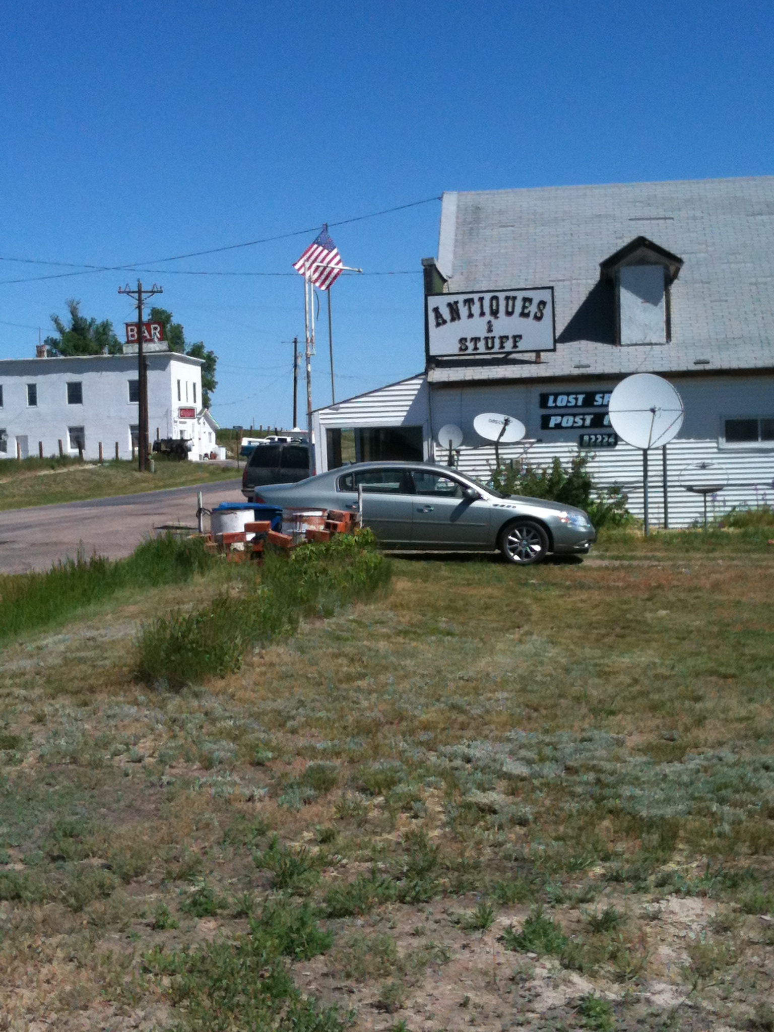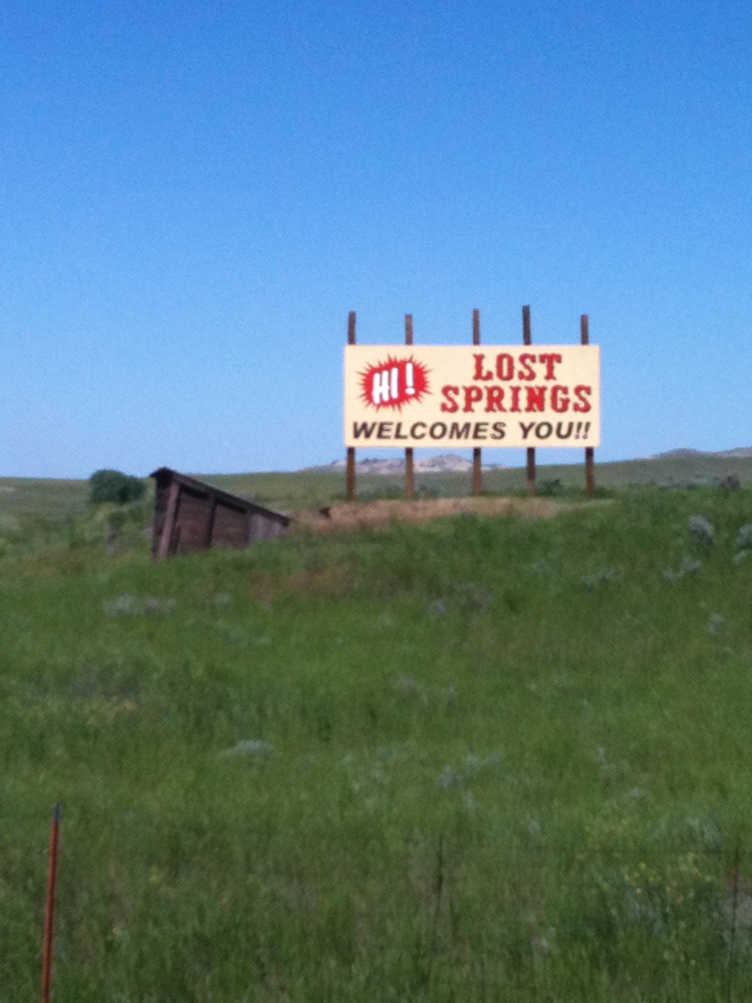 Moving on …. we’re driving along and are curious enough about that welcoming sign to pull into Lost Springs and check it out: