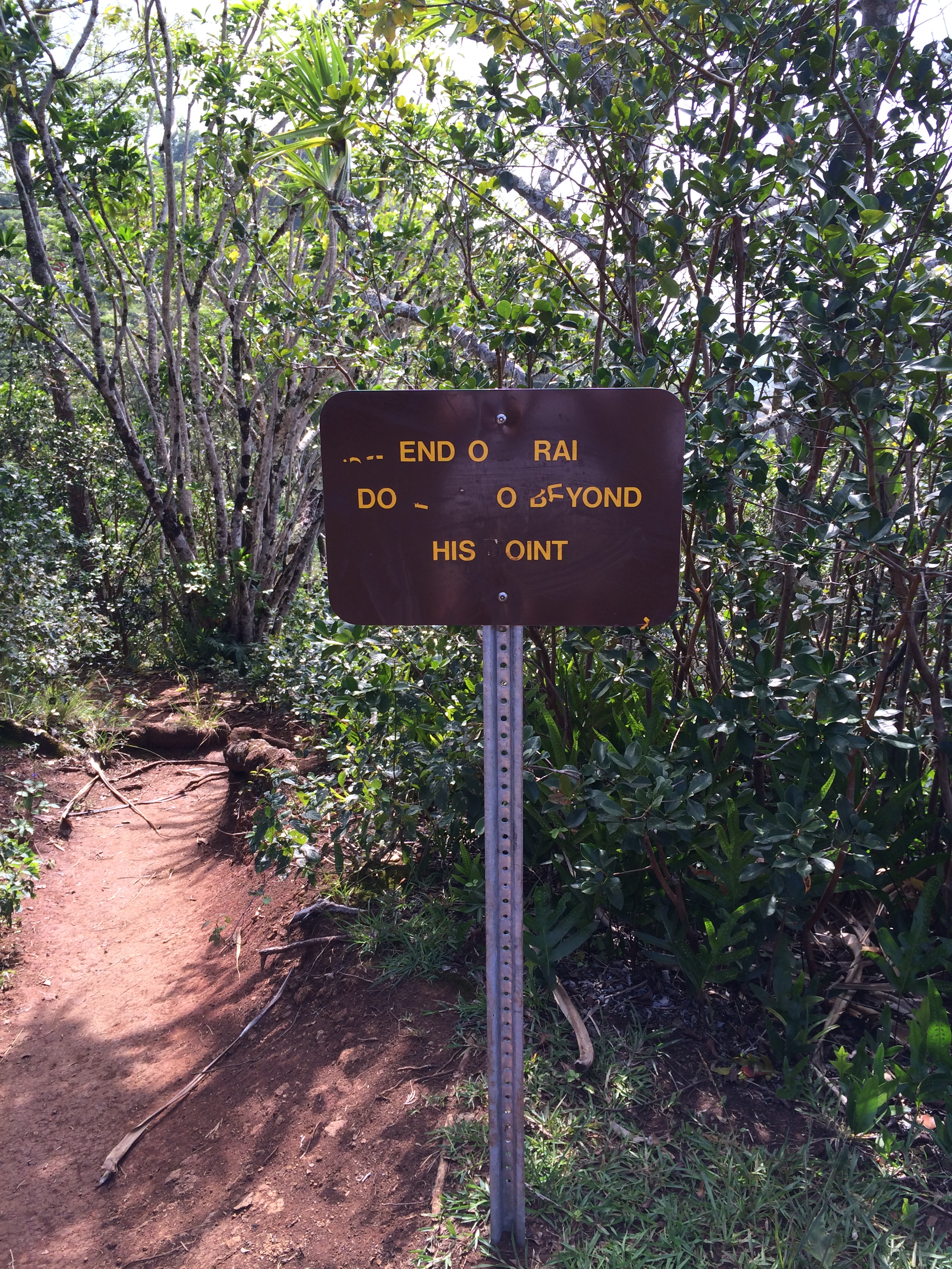 Nope, can’t read it. We do see a trail. Eric and David forge ahead. Okay, so we decide to follow- for maybe fifty feet – uh, when we run into another sign