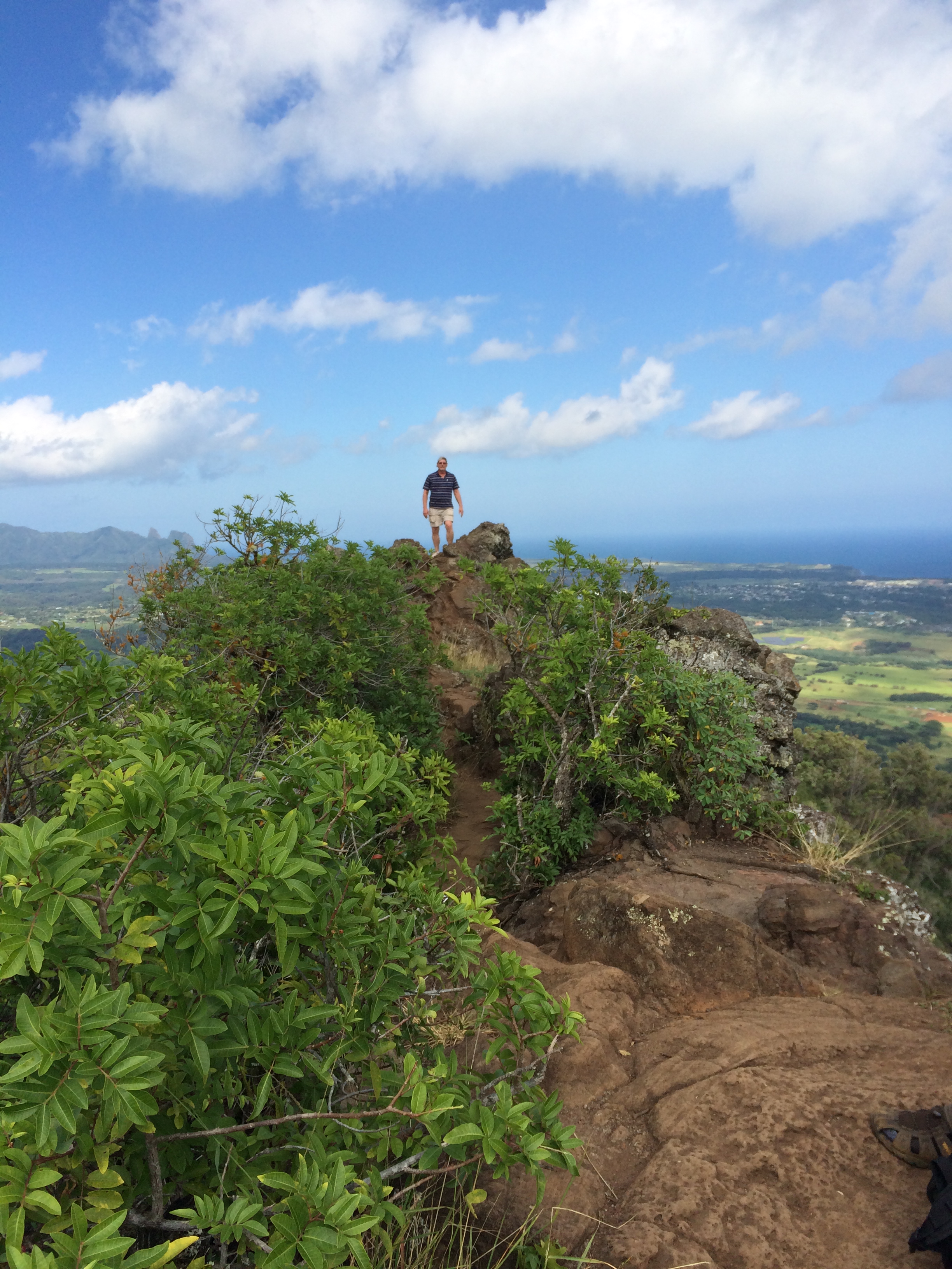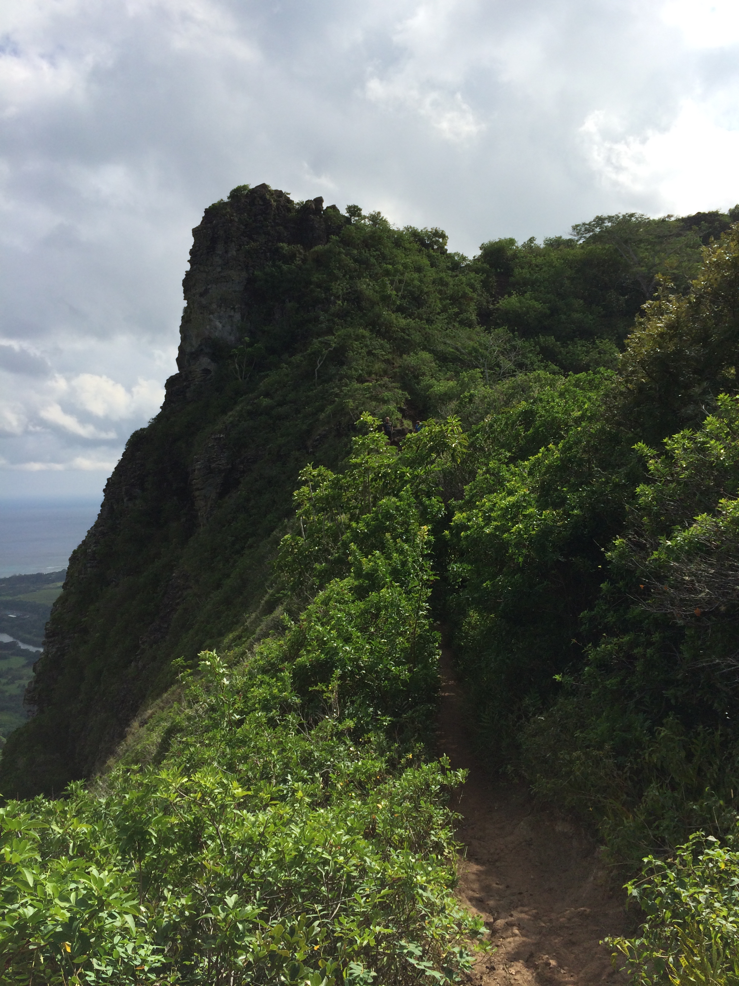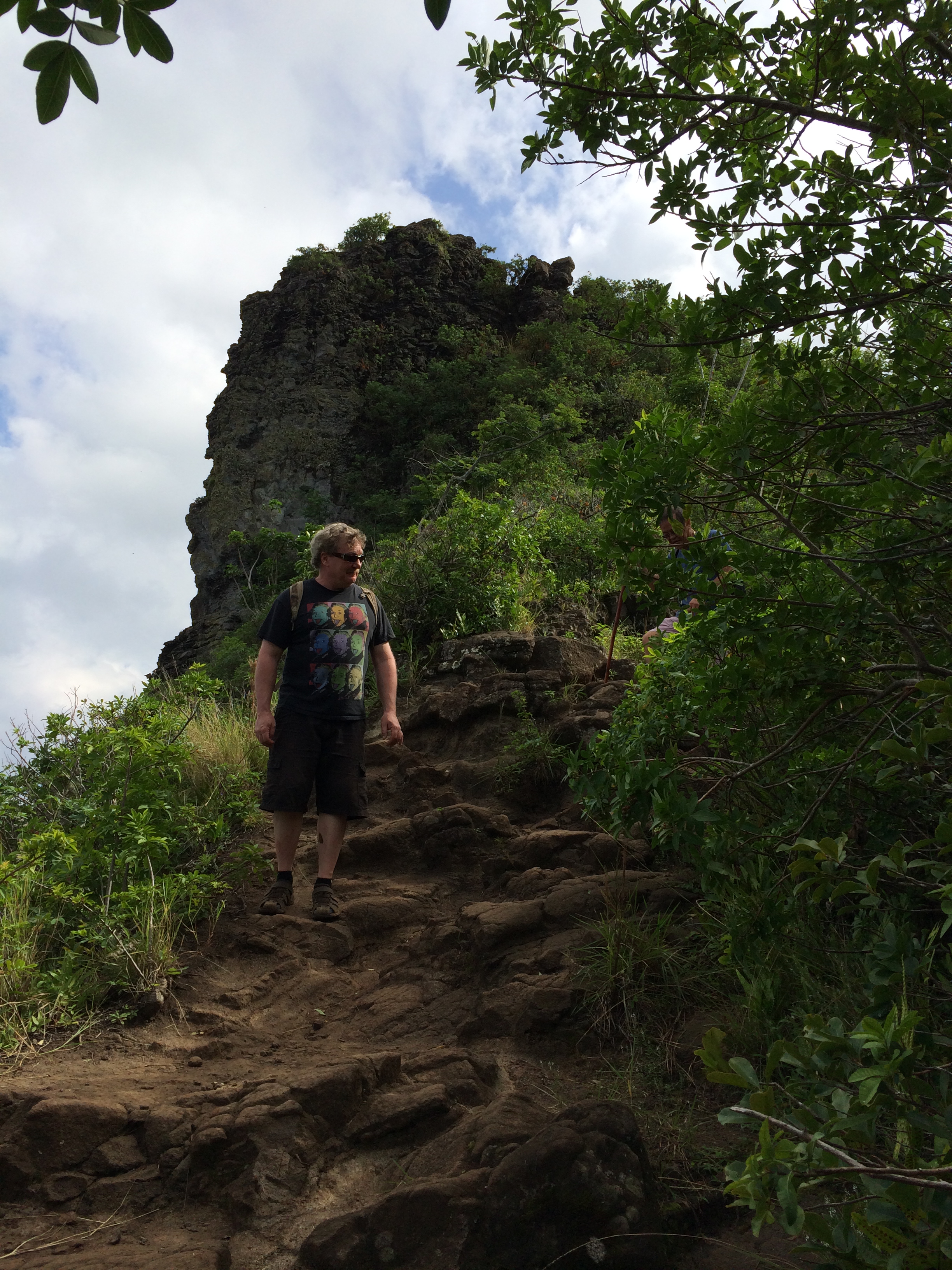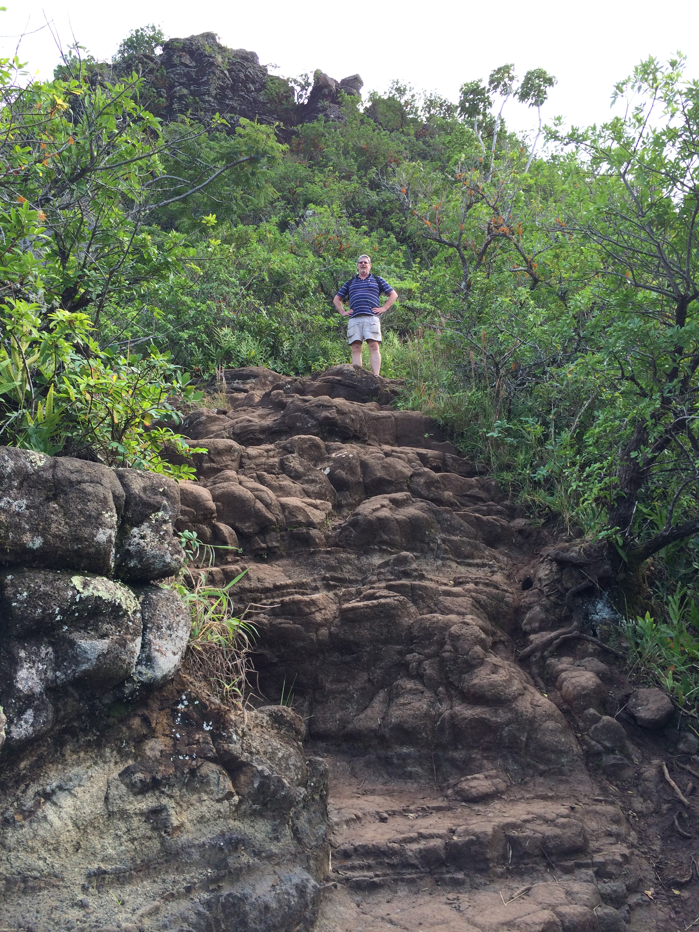 The trail (Nounou trail) is about a two-mile hike to the top of Sleeping Giant. We are hiking it today, Steph and Vic, Eric, David and I. The trailhead begins at Halelilo Road in Wailua.