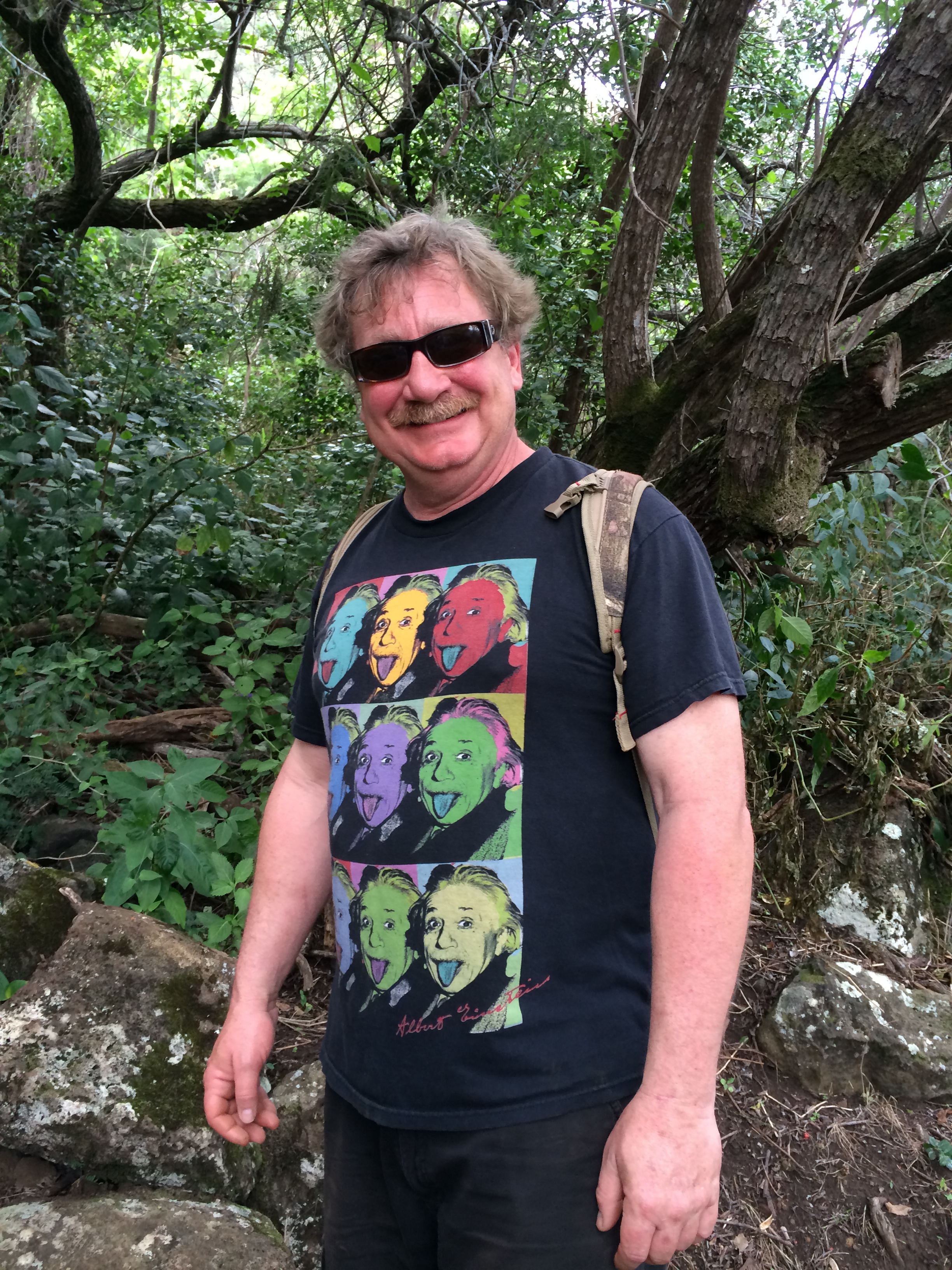 In his hideous Einstein t-shirt.