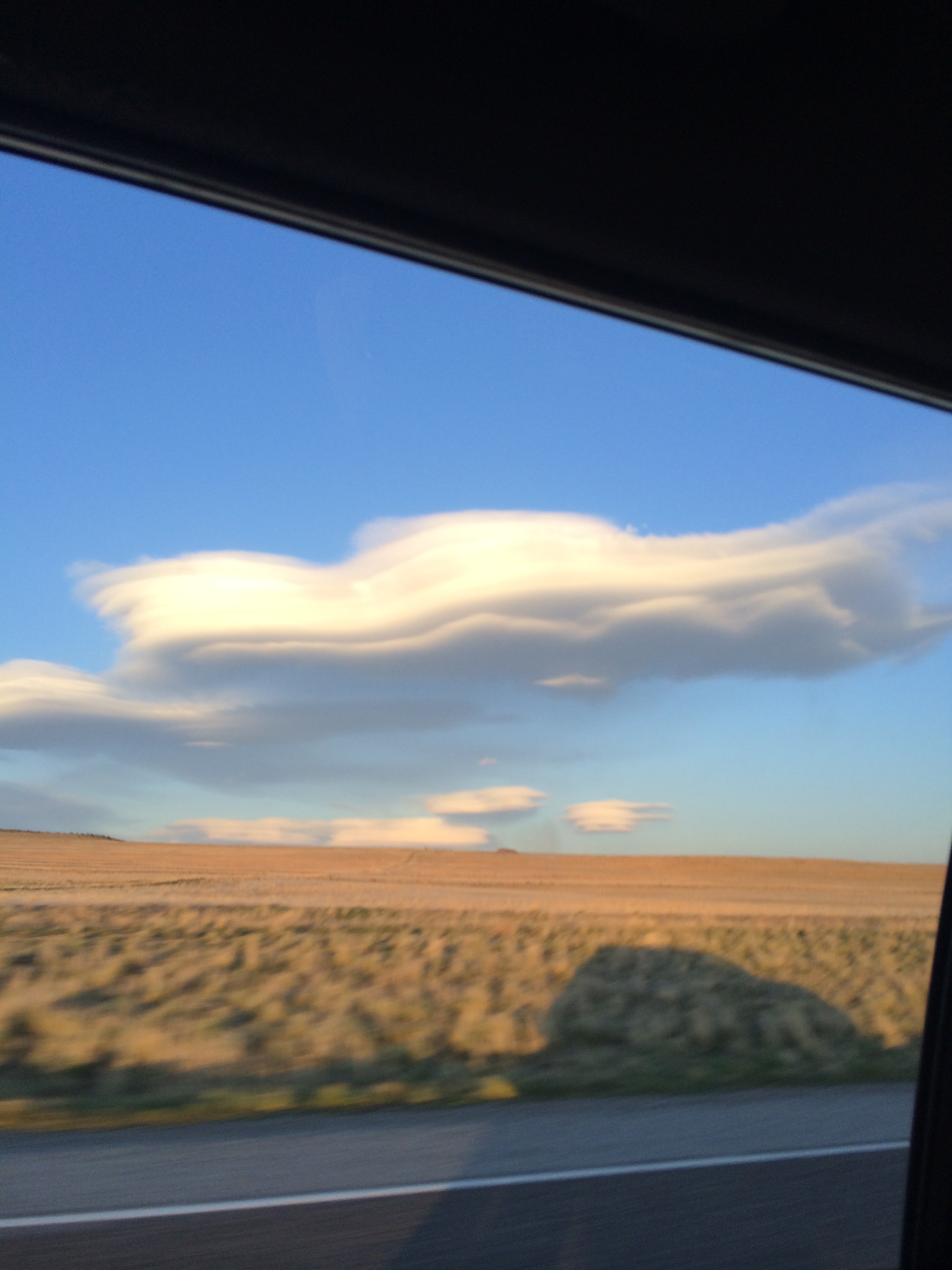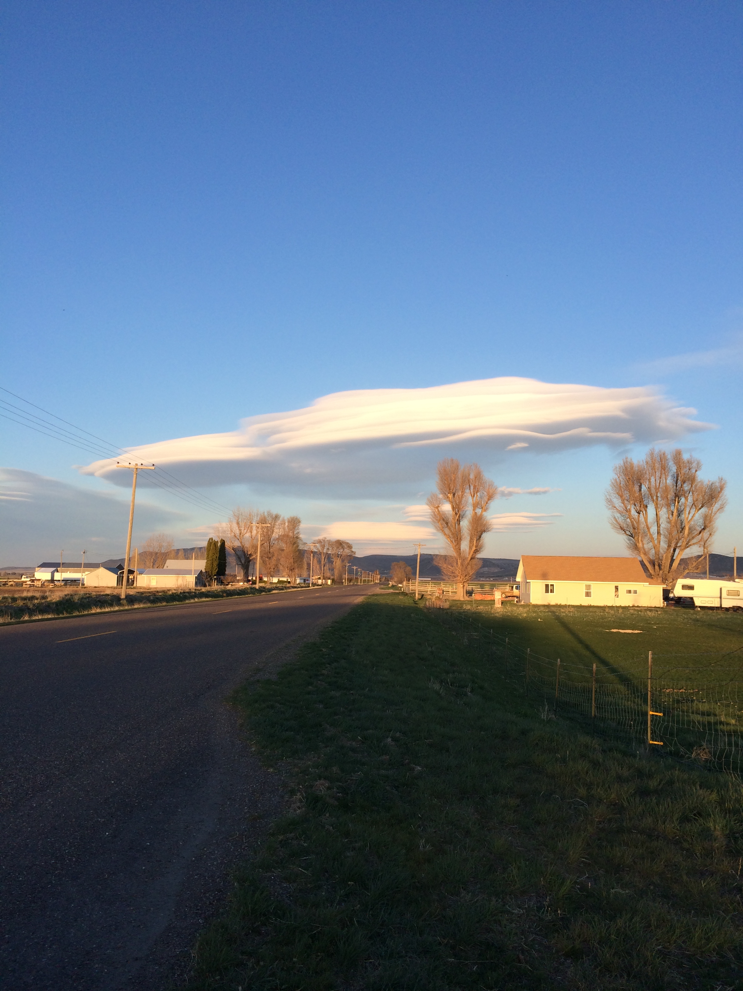We are south of Burley now, traveling on 500 South toward Albion. Check out the sky! “Lenticular clouds.’ David explains.