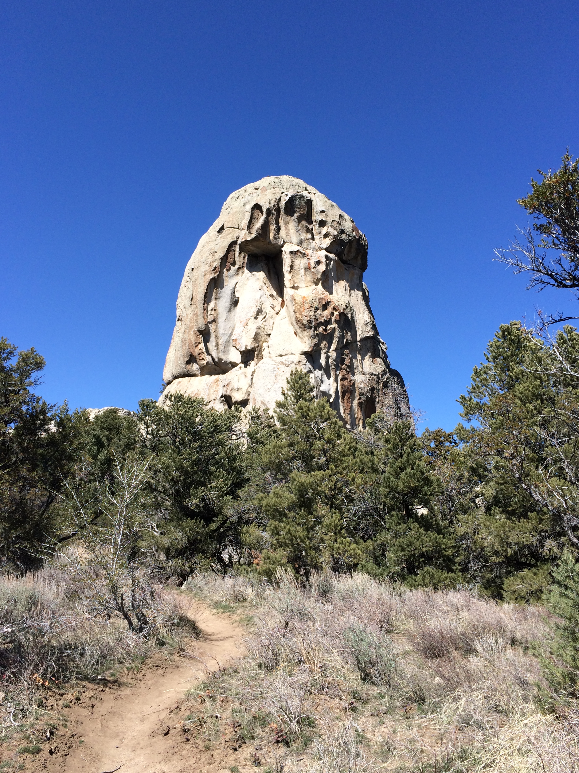 We drive to the parking lot at “Parking Lot Rock” and hit the Creekside Towers Trail into the ‘Inner City.’