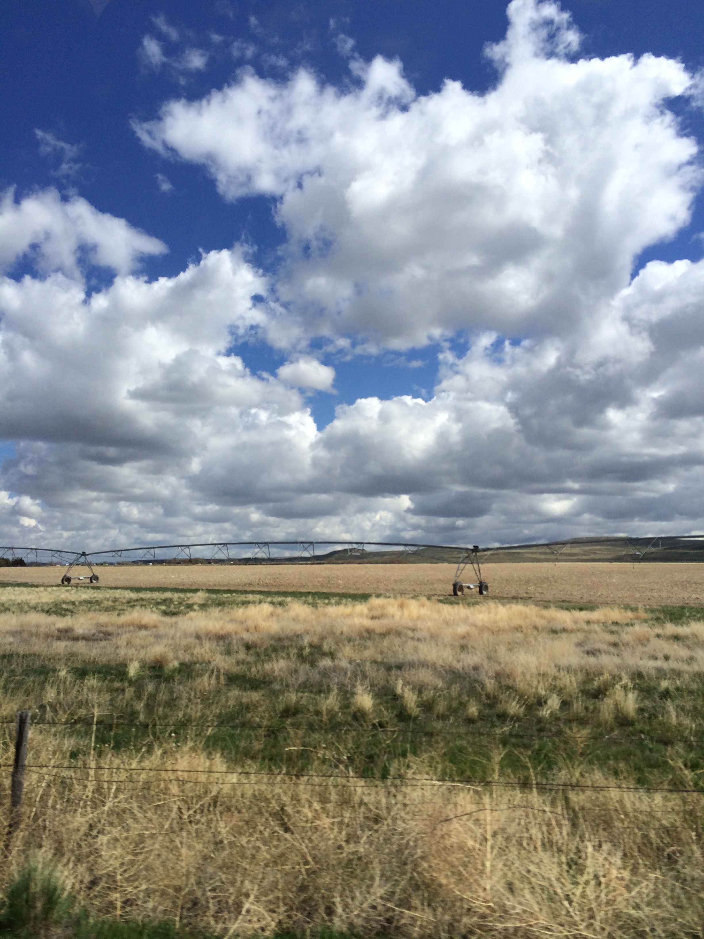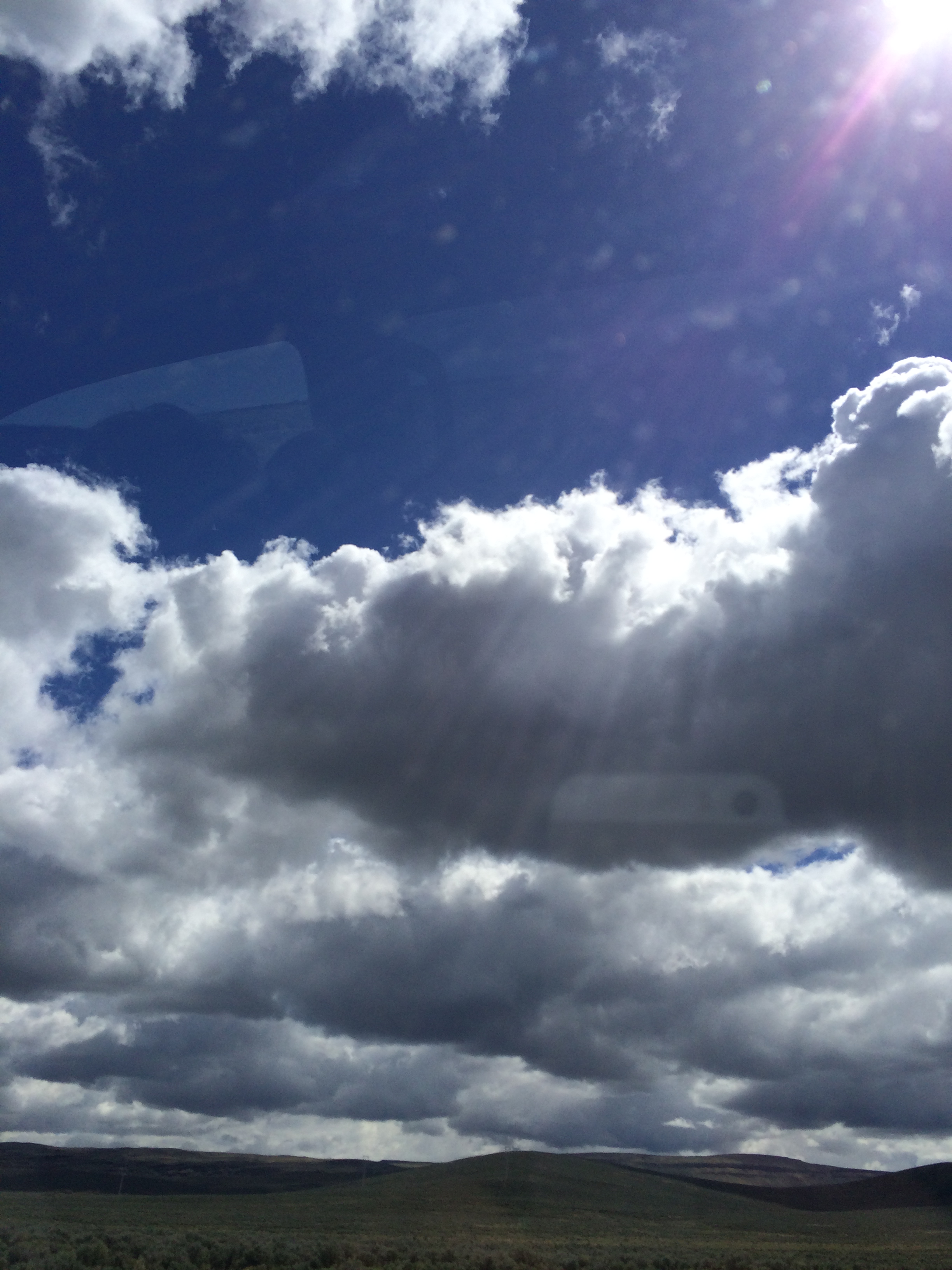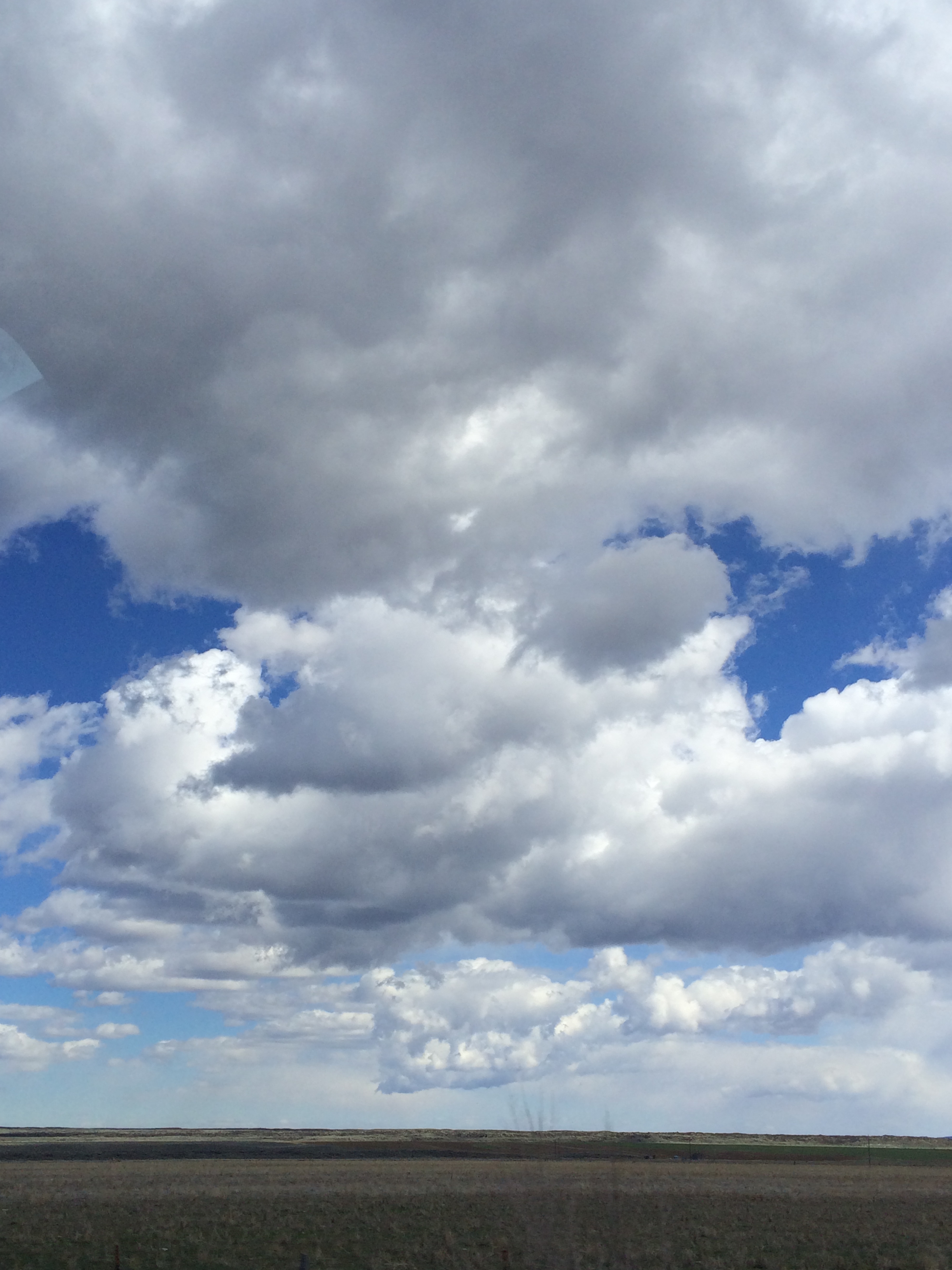 Sunday, April 13, 2014. We are headed on Highway 20 toward Idaho Falls now after our stop at Shoshone Falls. David is driving, Eric is navigating, and I’m in the back seat mesmerized by the sky.