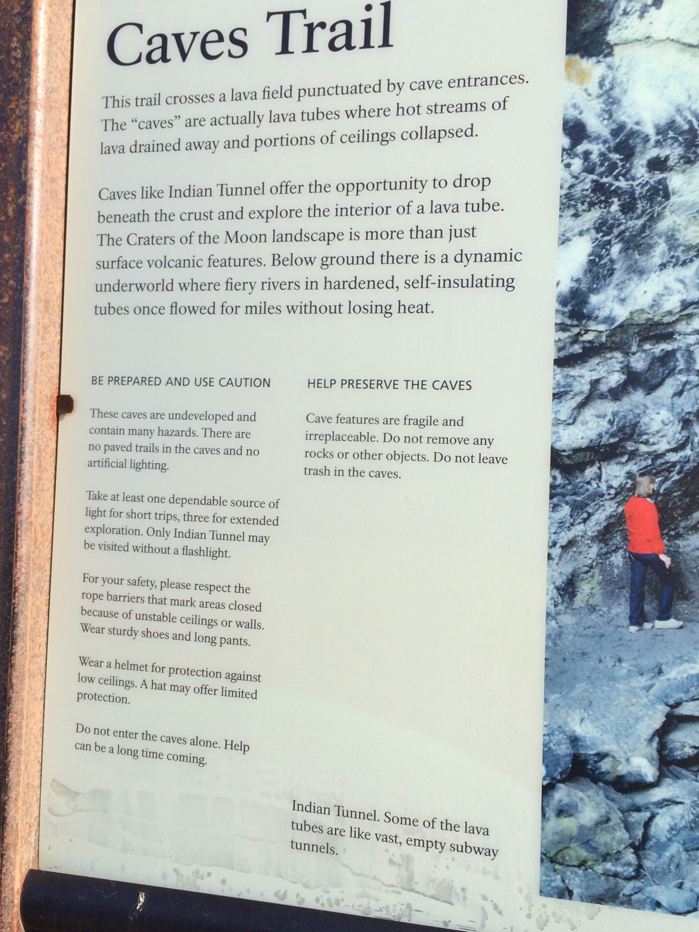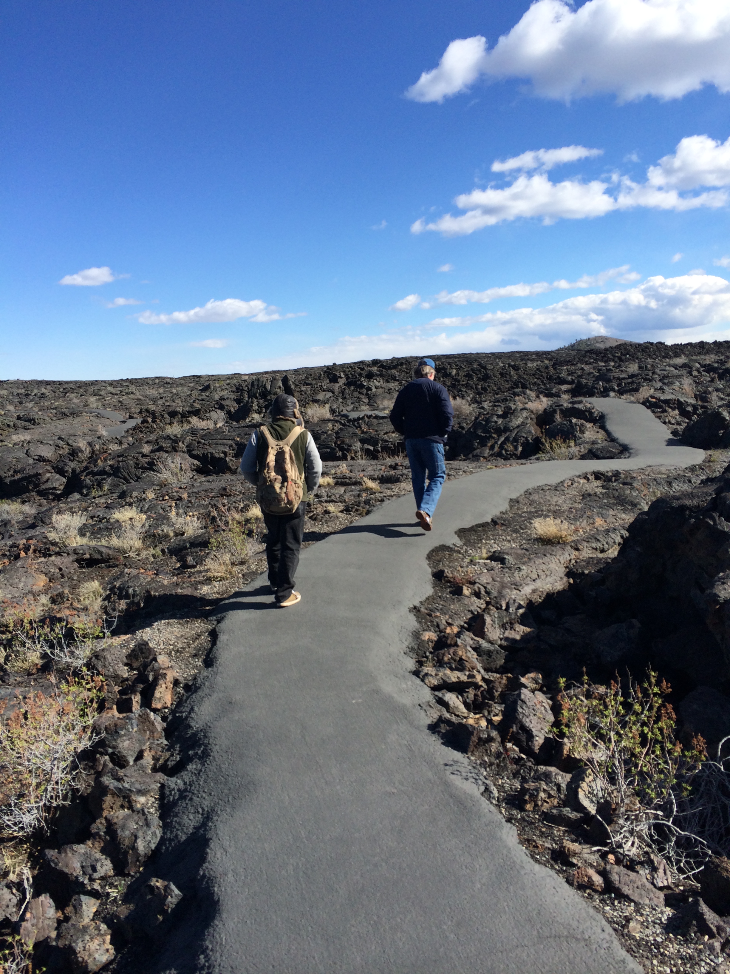No, actually! … we’re at the Craters of the Moon National Monument, which lies along highway 20 between Arco and Carey, Idaho, or, if, perchance, you haven’t heard of the tiny towns of Arco and Carey, halfway between Boise and Yellowstone Park.