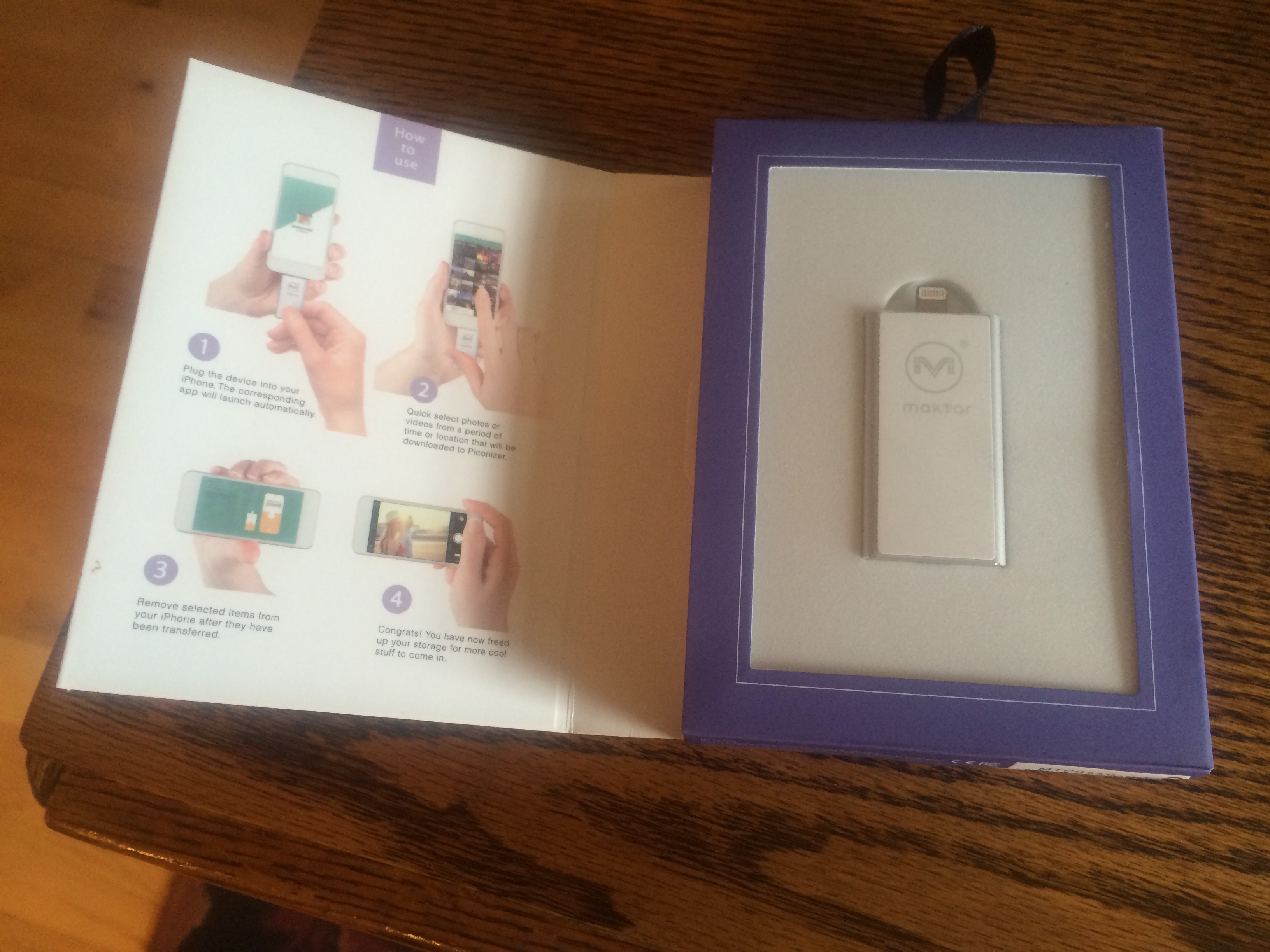 Great! Just upload the piconizer app to i-phone, connect gadget to phone like a thumb drive, transfer photos, delete photos on phone, voila!- I’ve freed up storage on my i-Phone. Right? Wrong. I couldn’t download the piconizer app to begin with because my i-Phone didn’t have enough memory, even though I had already deleted scores of photos and videos. Okay … fine. I deleted several apps. Rebooted my phone. 3 times. Still no memory available (in ‘usage’ under settings).