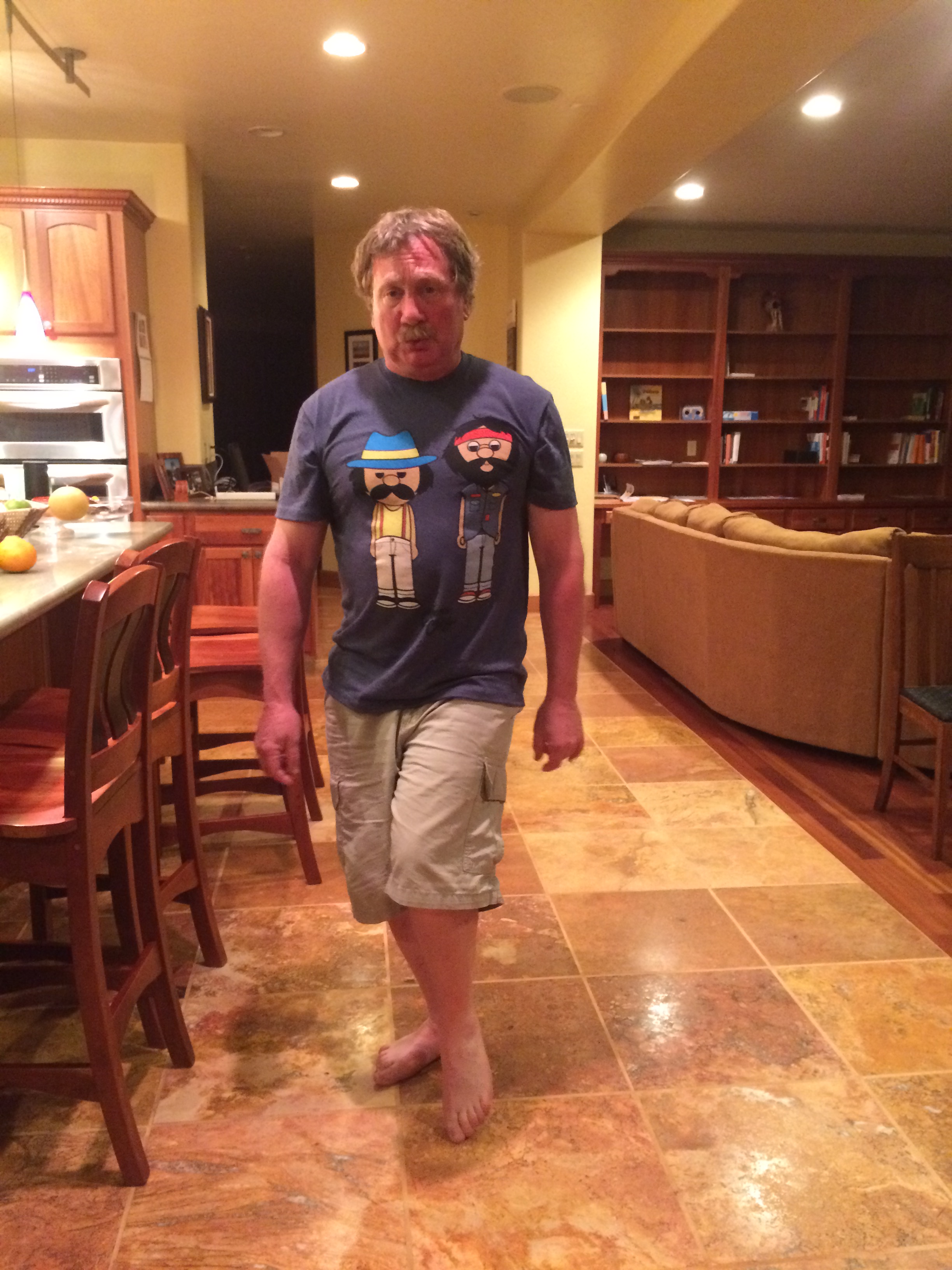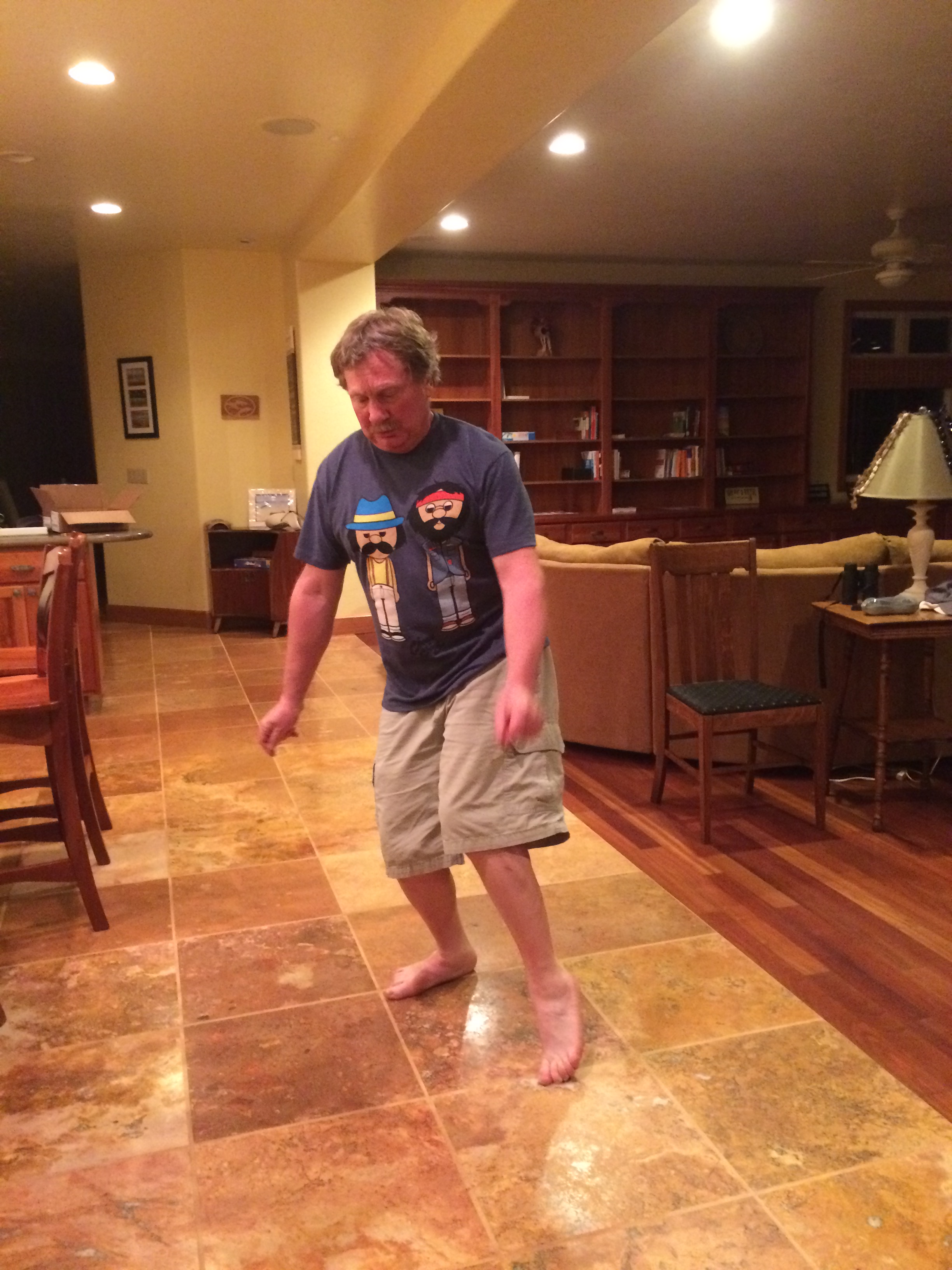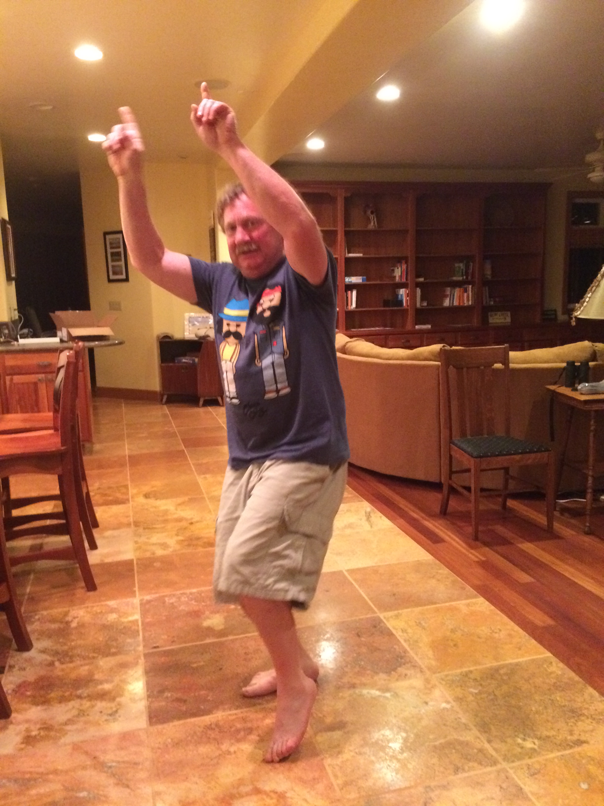 To his favorite Garth Brooks tune, “Friends in Low Places.”
