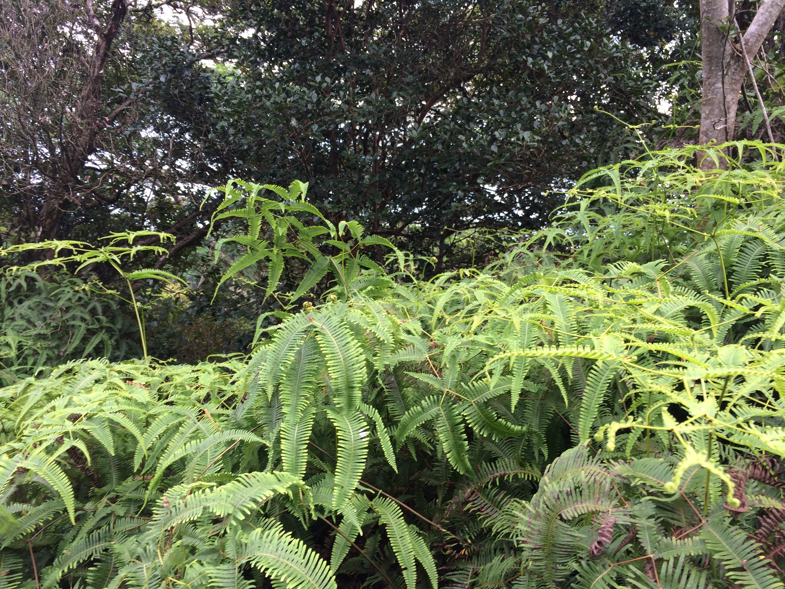 So, fast forward three days, to today, after our failed hike to the ‘waterfall’ – Eric coaxed David and me into hiking the Moalepe trail from its trail head at Olohena Road, to the picnic table, and back – a 6 1/2 mile hike round trip. If we do it we will have hiked both trails, and covered all 5 miles over the ridge from trail head to trail head.