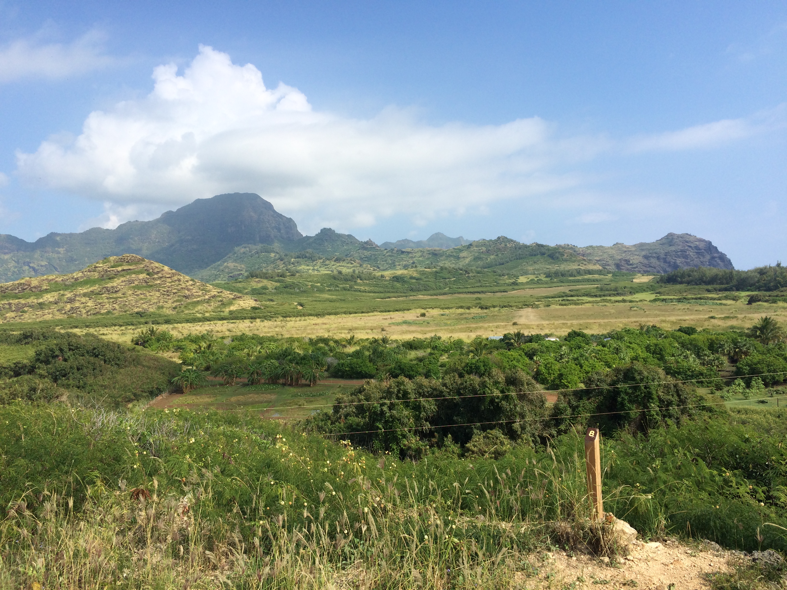 Tuesday, January 12, 2016, the five of us pile into the SUV and drive down the east coast of Kauai to the southern tip near Po’ipu (another site where Six Days Seven Nights was filmed). Past Kapa’a we come alongside Sleeping Giant: