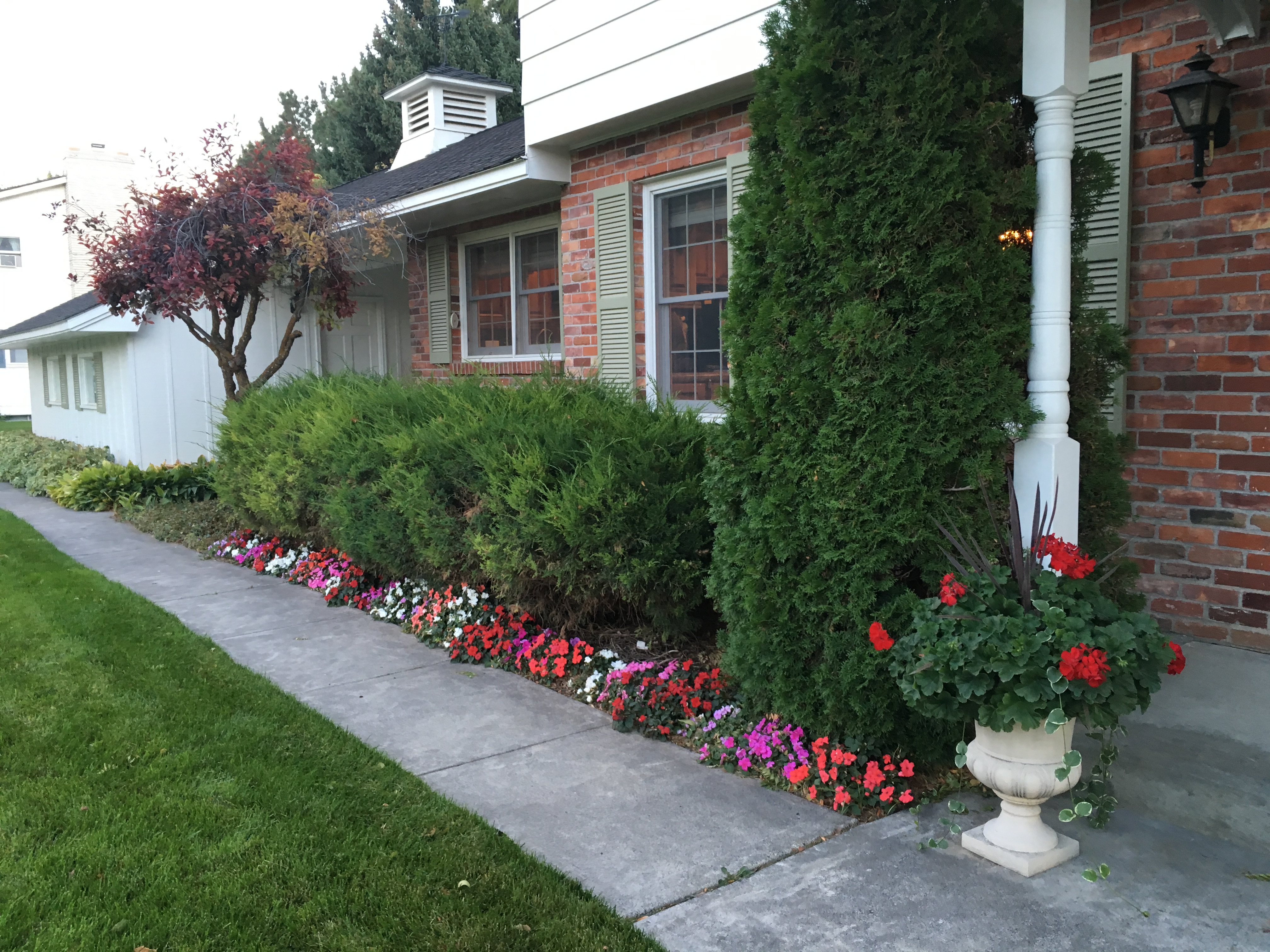 Back home now, I took what could be one last photo of our impatiens lining our front walk. Extremely frost sensitive. How long before they are nipped and laid limp by the first hard freeze? A week??