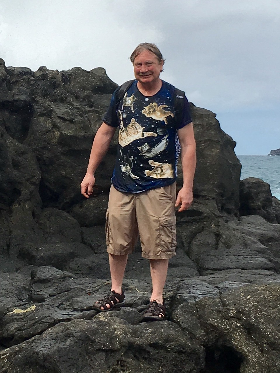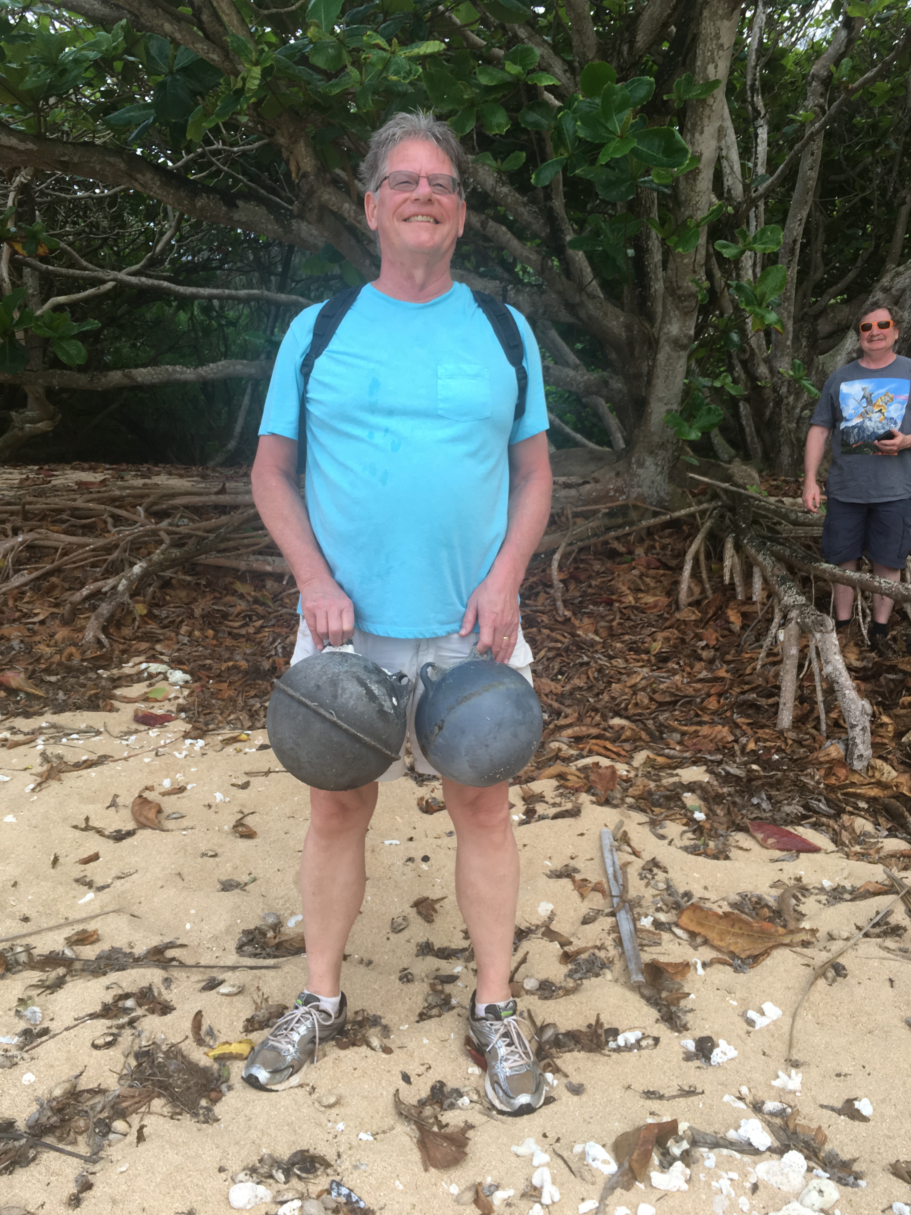 Our destination is to make it about two miles to the arch that sits on an outcrop of lava rock. You hike about 1/3 mile down a steep path through a brushy landscape to get to the beach. A bit further and you run into naturist sunbathing monk seals. To be honest here, at this juncture I had lost my flair for taking photos, on account of Eric now had an iPhone and he was even more maniacal about getting “just the right photo” then I ever was. So, for example, whereas I stood back a bit from the seals, Eric went right up to one, and startled it, and it spit at him just as you would expect from a Llama or angry redneck or something. So here’s my photo: