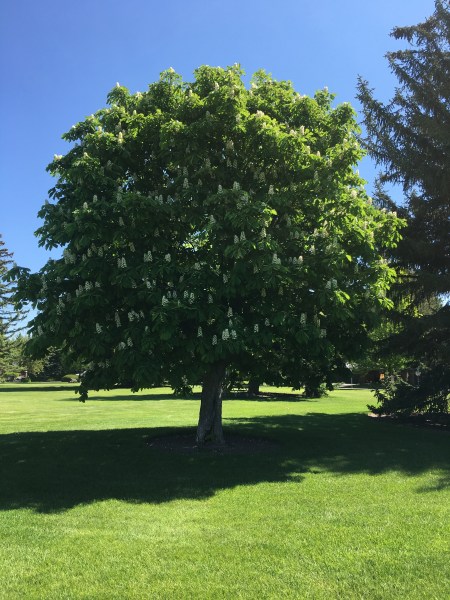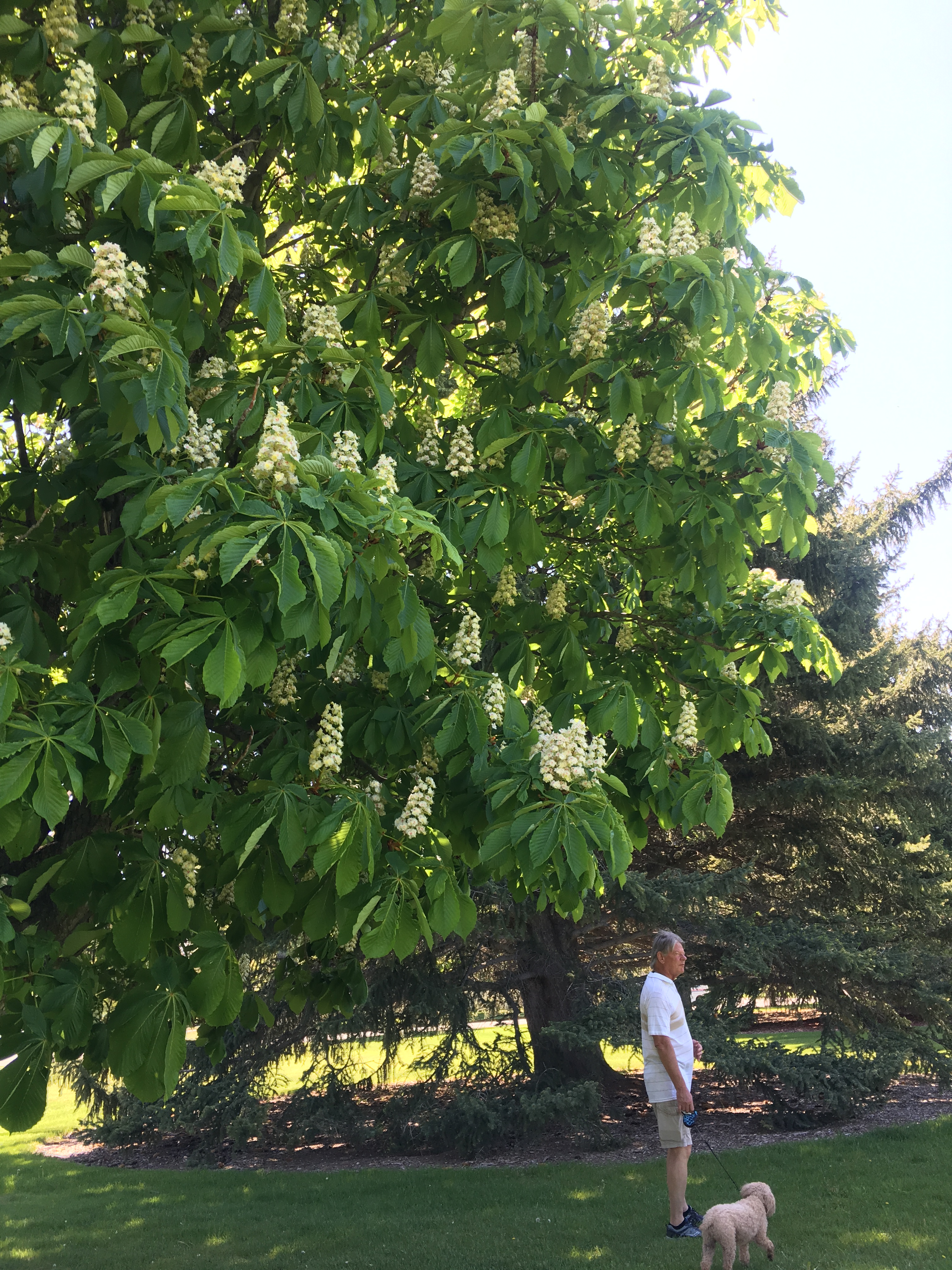 There’s a giant white horse chestnut tree in nearby Tautphaus Park, blooms in early June. I have missed it some years…