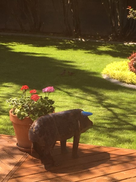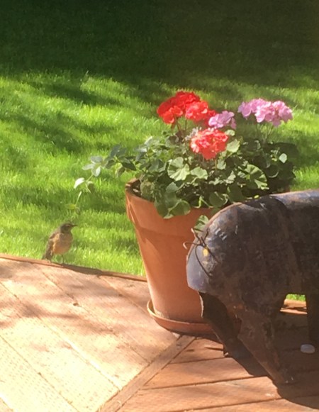 Other birds were busy making nests – helping themselves to inventory from our hanging pots. Hey, glad to help!