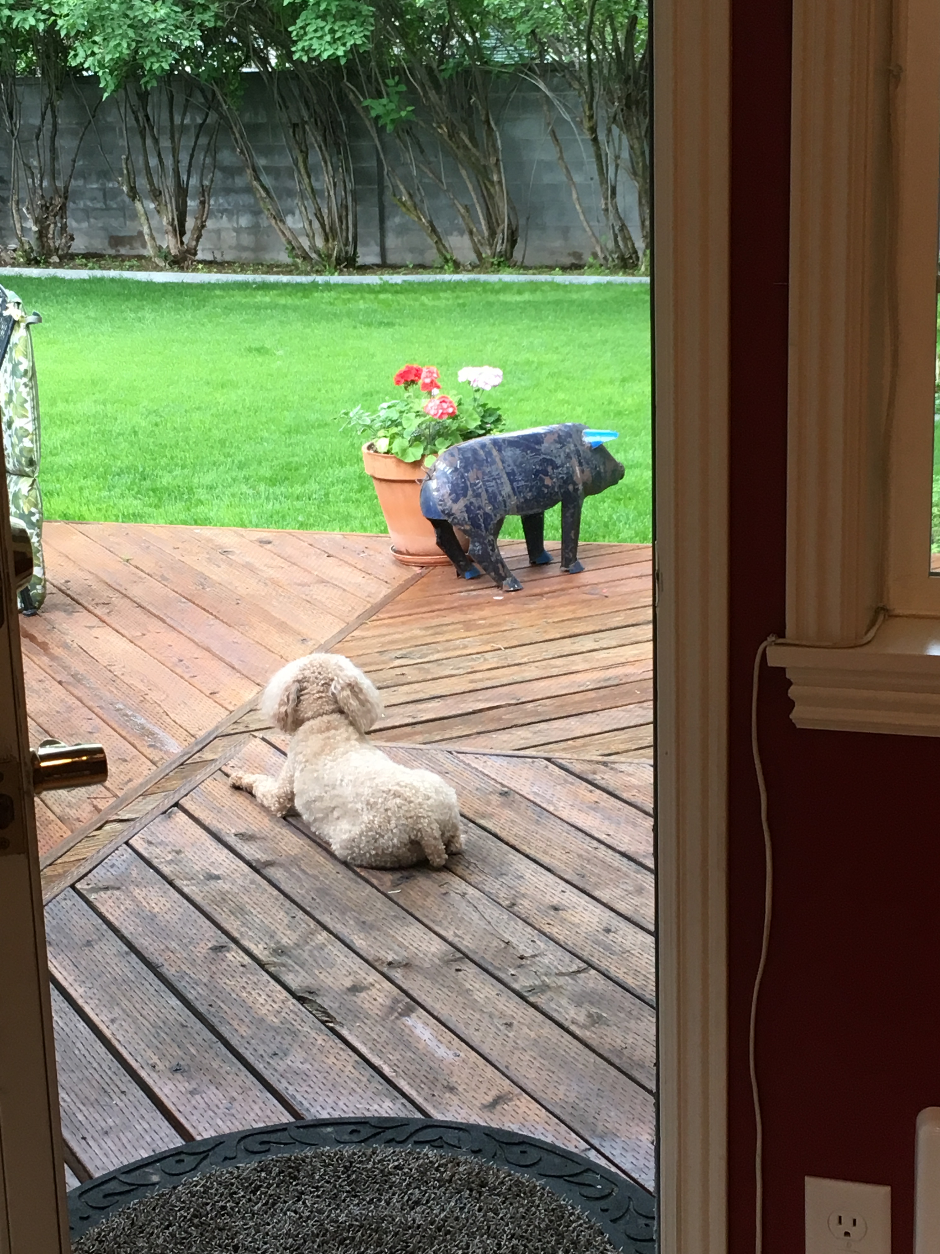 Meanwhile, Rudy continued to keep the back yard safe from strangers.