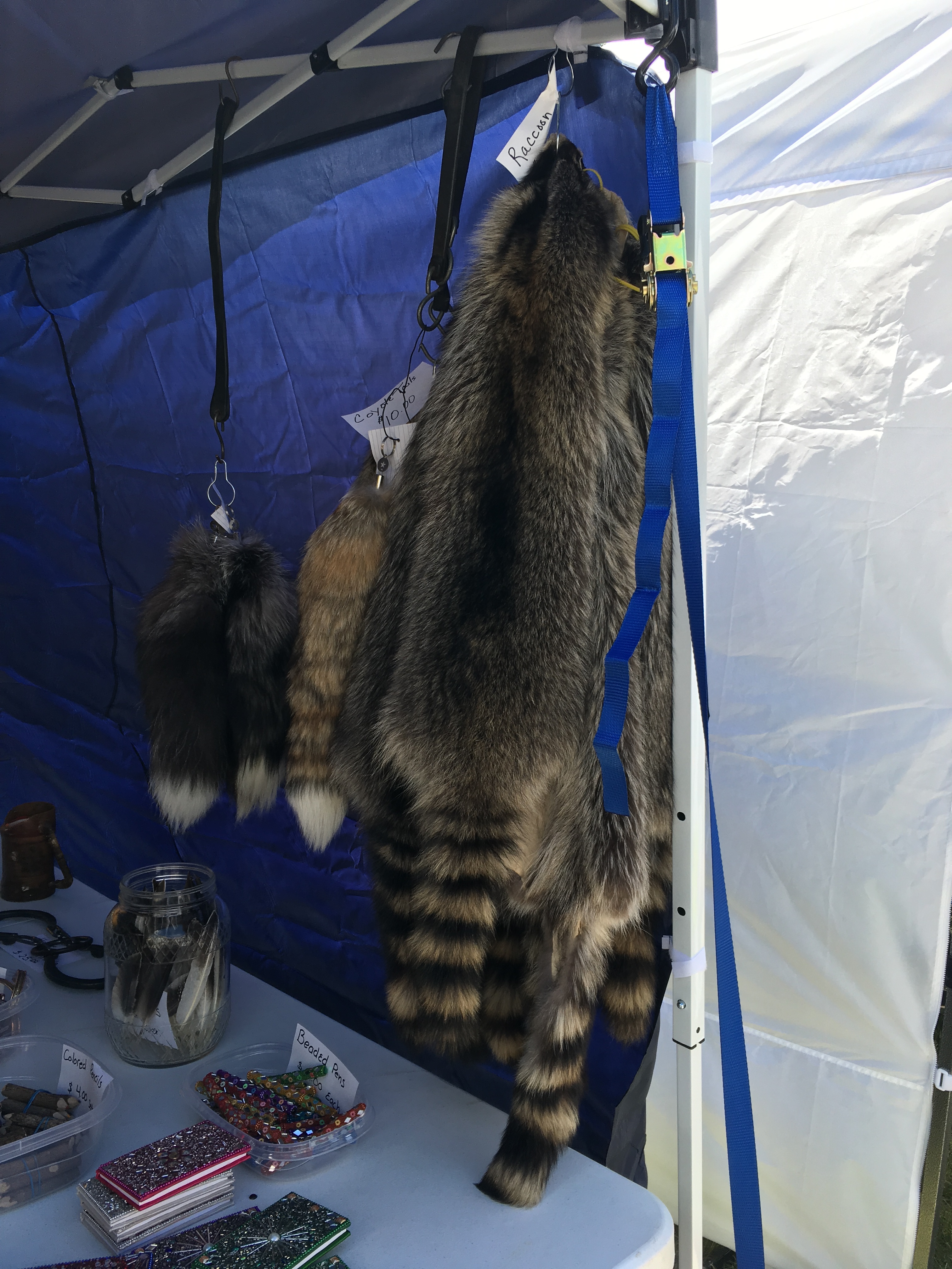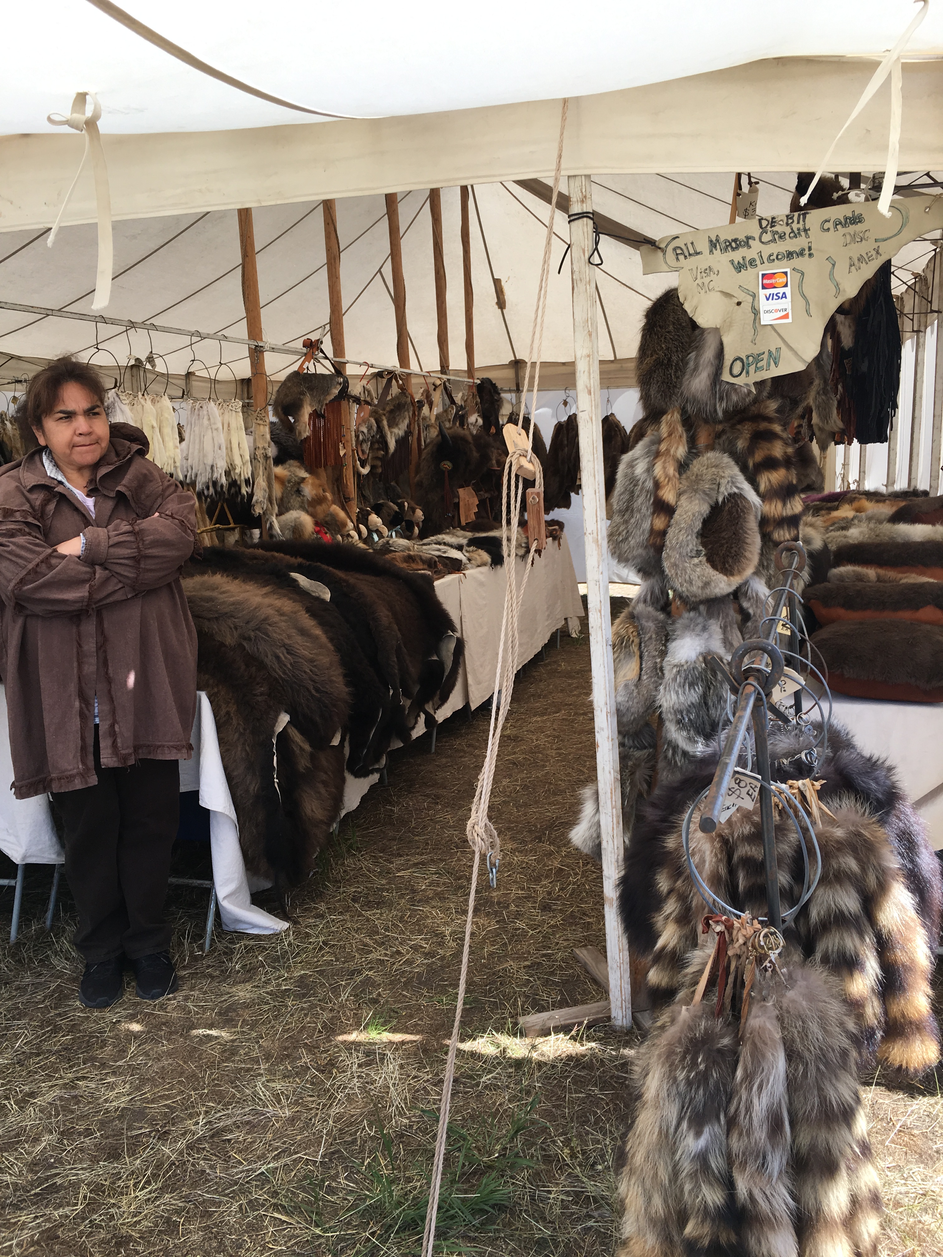 Meanwhile check out the booths! At least 30 of them, food vendors and merchants selling American Indian jewelry, photography, alpaca wool clothing, pottery, art, furs, Davy Crockett coon hats (Classic! My brothers each had one, uh, about 55-60 years ago?) – here, I took some photos – :