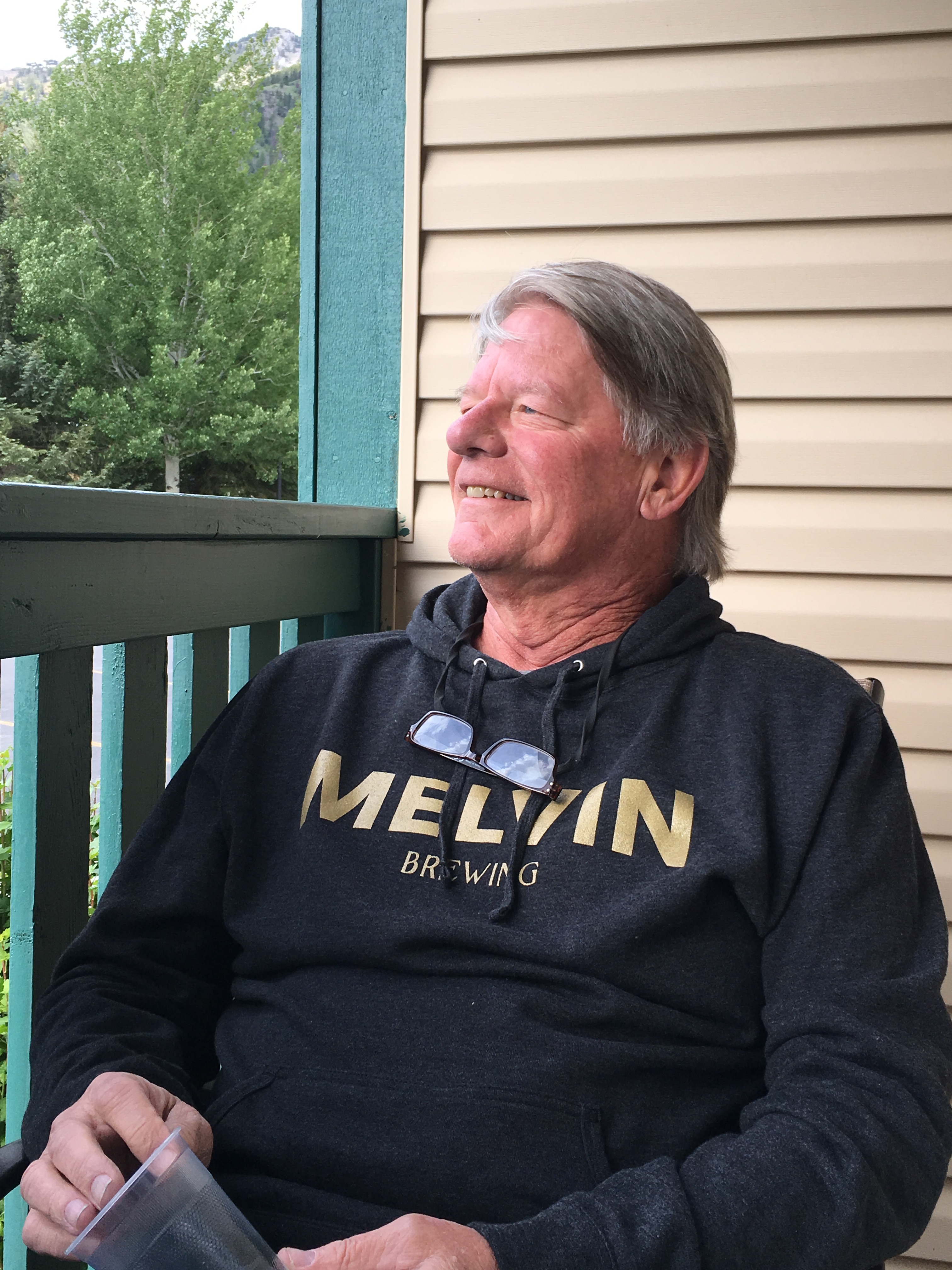 David is wearing his new ‘Melvin Brewery’ sweatshirt he bought yesterday from a vendor.
