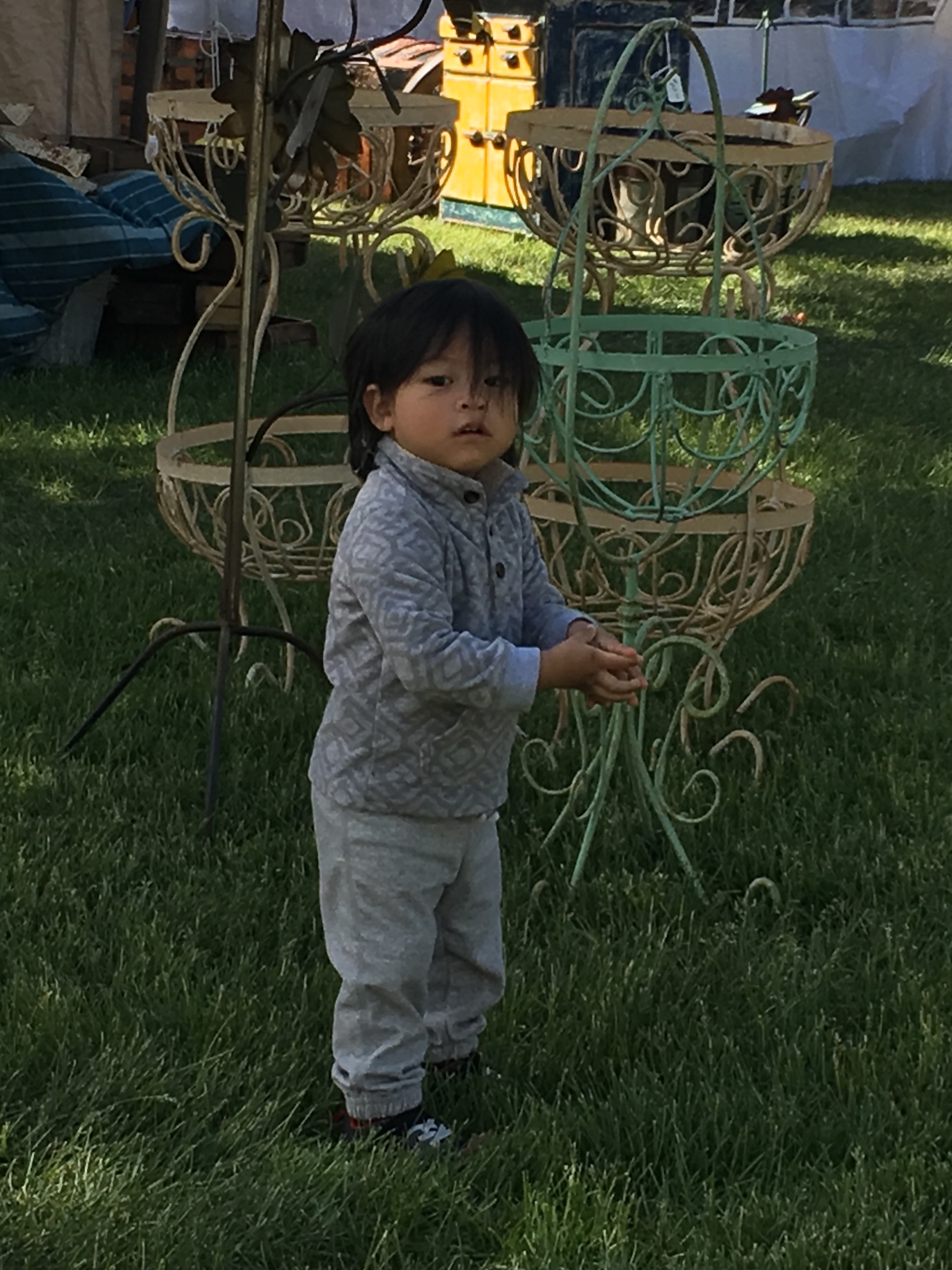 It’s Sunday morning and we need to hit the road back home. We stop by Eric’s booth one more time and hang out a bit. The morning is peaceful, the air is calm, and noticeably warmer than yesterday. We sit, entertained by the little children that belong to the Indian family that sells alpaca wool clothing in the booth behind Eric …