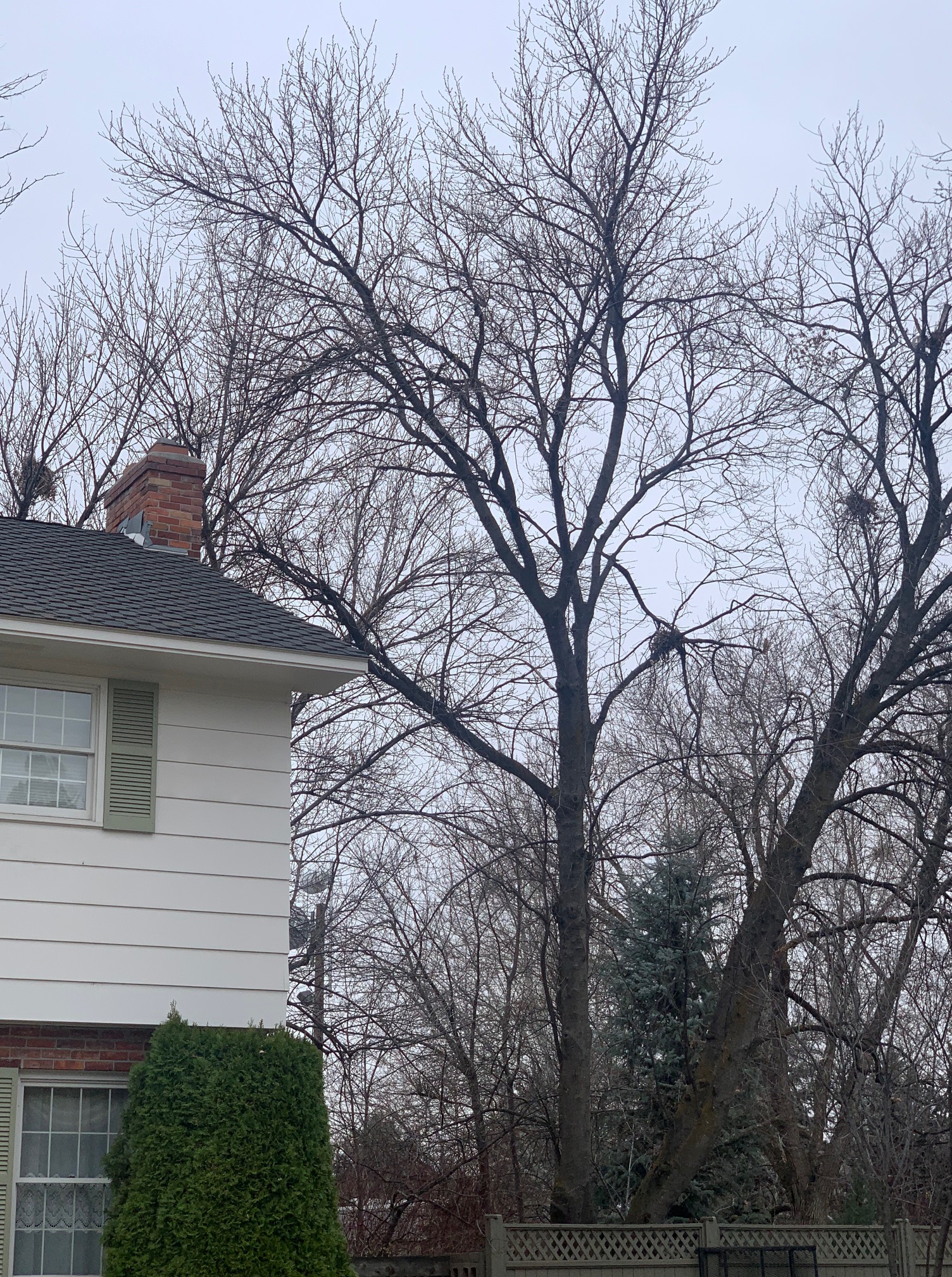 We have gray squirrels scampering across our back yard all winter long, see all those nests up there in those ancient trees behind our house?