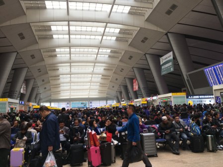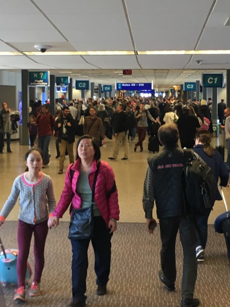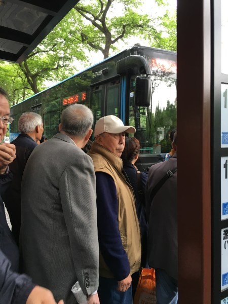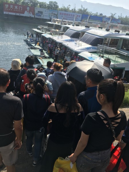 It’s 10:45am and we can finally see the front of the line! We should board the tram shortly …