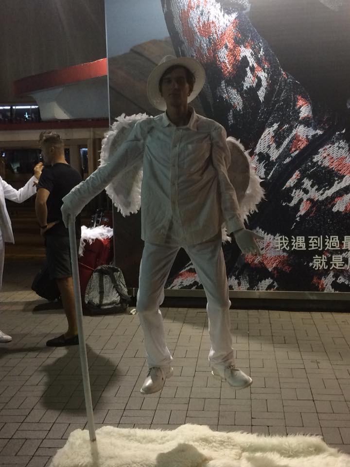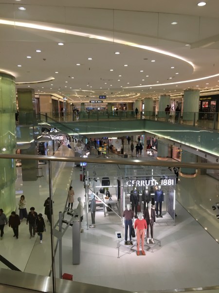 We arrive on Hong Kong Island and walk to the Peak Tram. There’s a long line waiting for the tram, the wait is almost an hour, feels similar, we concur, to waiting in line for a ride at Disney World. But what else are we going to do? You people-watch in line and try to guess the language and/or country of origin of the people around you.