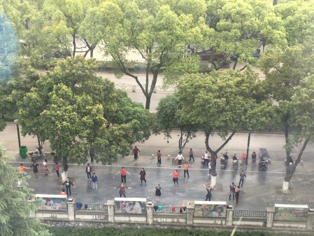 We pass a group doing Fan Kung Fu or Kung Fu Fan! I take a video