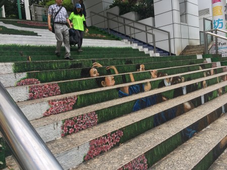 We walked through Kowloon Park in Hong Kong. Went up these steps to enter the park …