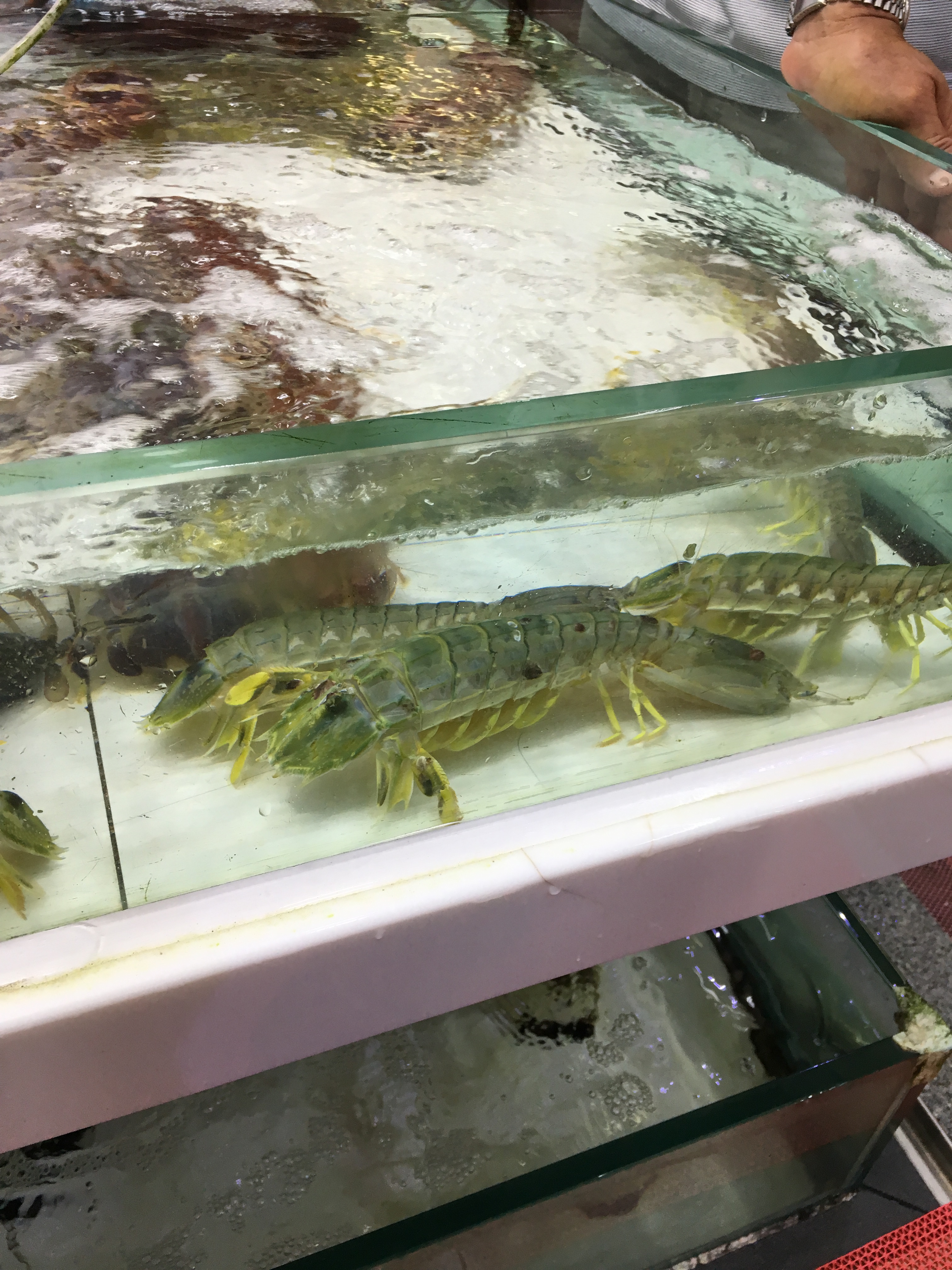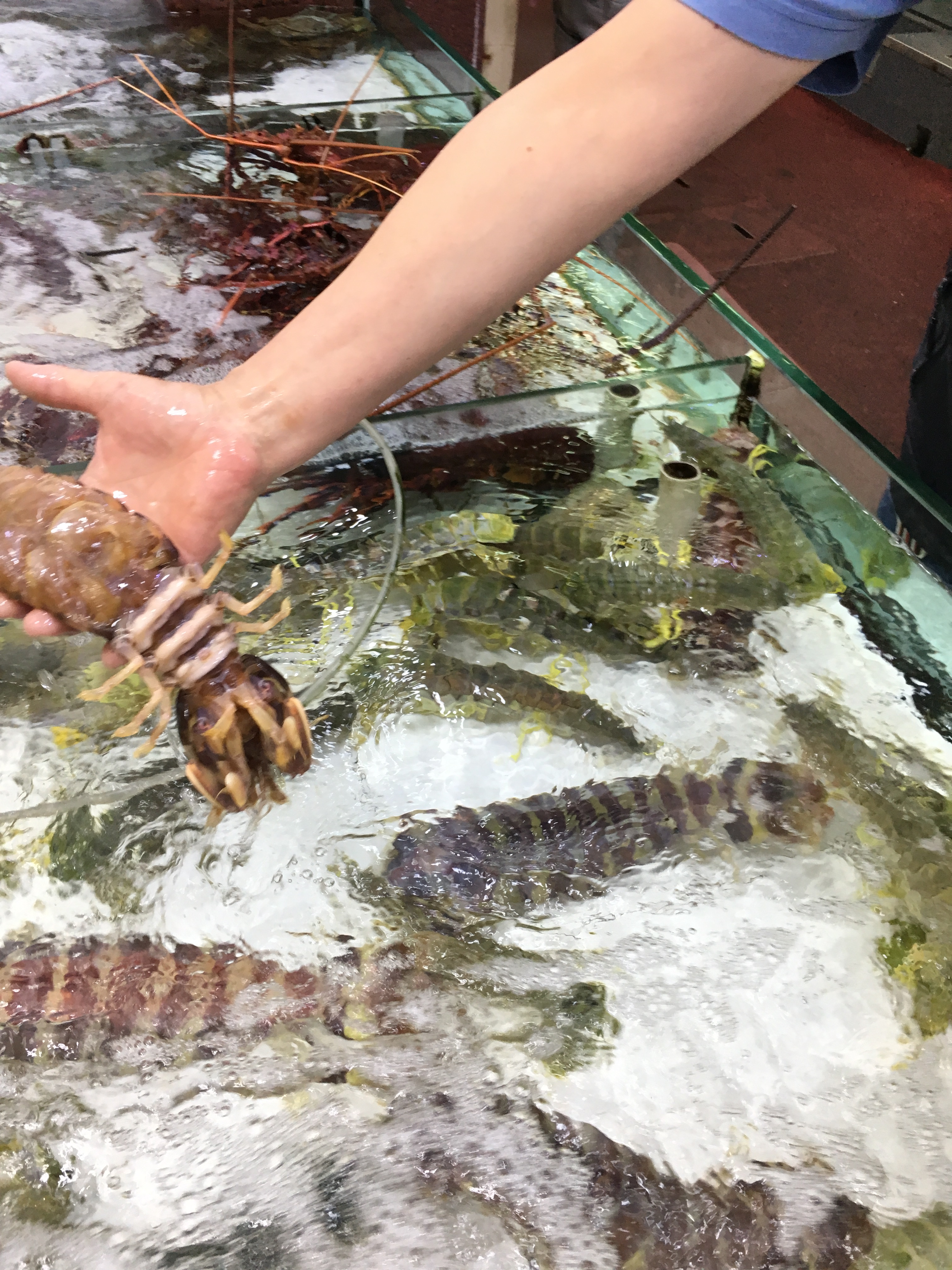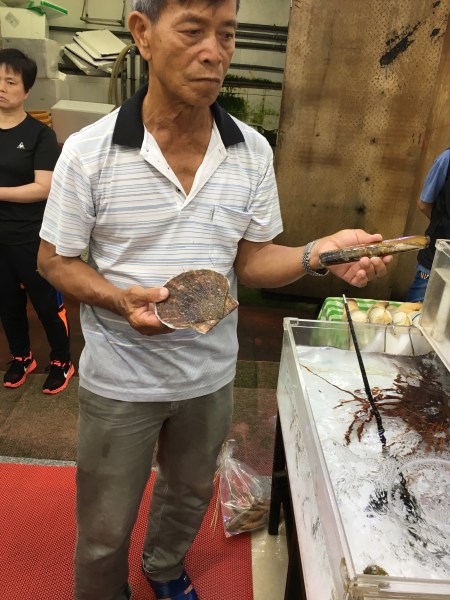 For our final dinner, Sunday night, Victor takes us down to the docks for a fresh seafood dinner. By ‘fresh’ I mean we literally picked out our seafood swimming in water tanks, one seafood vendor after the other, lined the dock. We picked out large and small shrimp, a whole fish, scallops, abalone – they cooked them up – and moments later, we were served!
