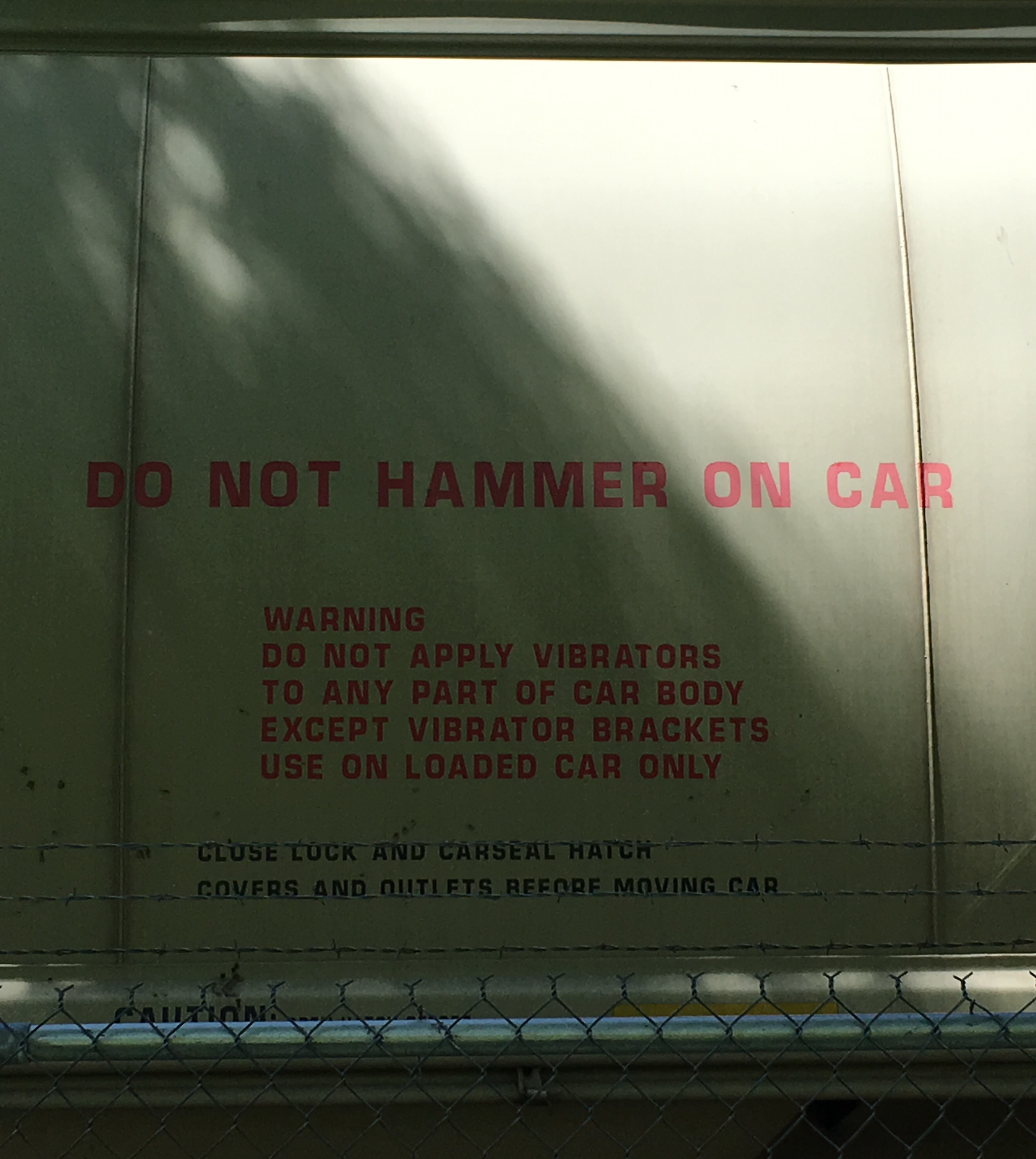 Huh, this is interesting… “Do not hammer on car” Now, who would do that, exactly how … and, why?