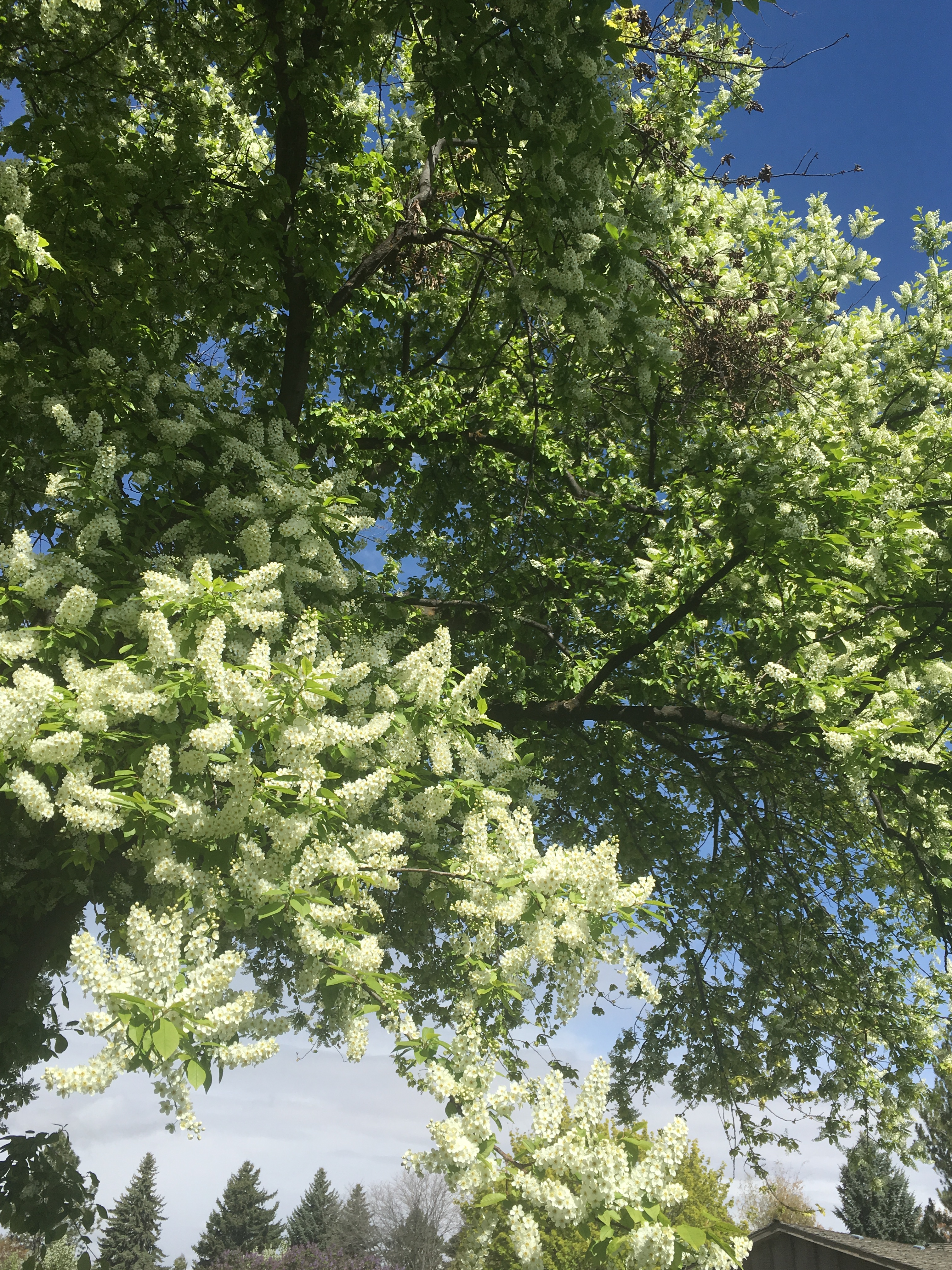 My absolute favorite tree of all blooms in late May. I watch for it. There’s a big ol’ ancient one in town beside the Broadway Bridge on the Snake River.