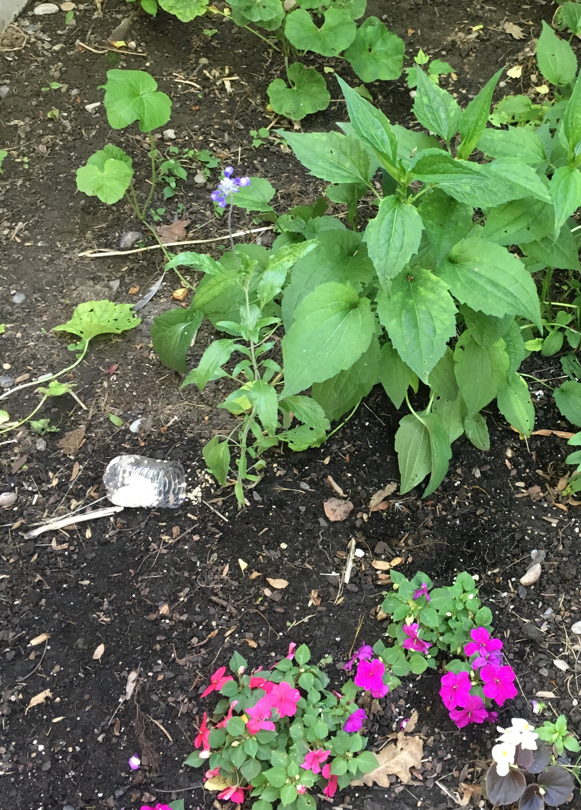 This year I learned from the local nursery how important it is to apply their special brand of fertilizer on the flowers and vegetables – at least once a week!, to achieve, say, the desired effect for your next dinner party of showing off your happy bushy flower pots. Except if, on your petunia leaves, you start to notice what looks like a serious case of spider mites or maybe lace bugs, and you run a sick leaf down to your local greenhouse for their expert diagnosis, you might learn that applying liquid fertilizer to plants at the beginning of a 90-degree day will likely burn the leaves as if they’re infested with tiny bugs. On the other hand, with the application of liquid fertilizer on a 90-degree day, you could also maybe burn any existing pests off the leaves? I know. It’s hard to tell about these things, other than to admit your giftedness to kill plants.