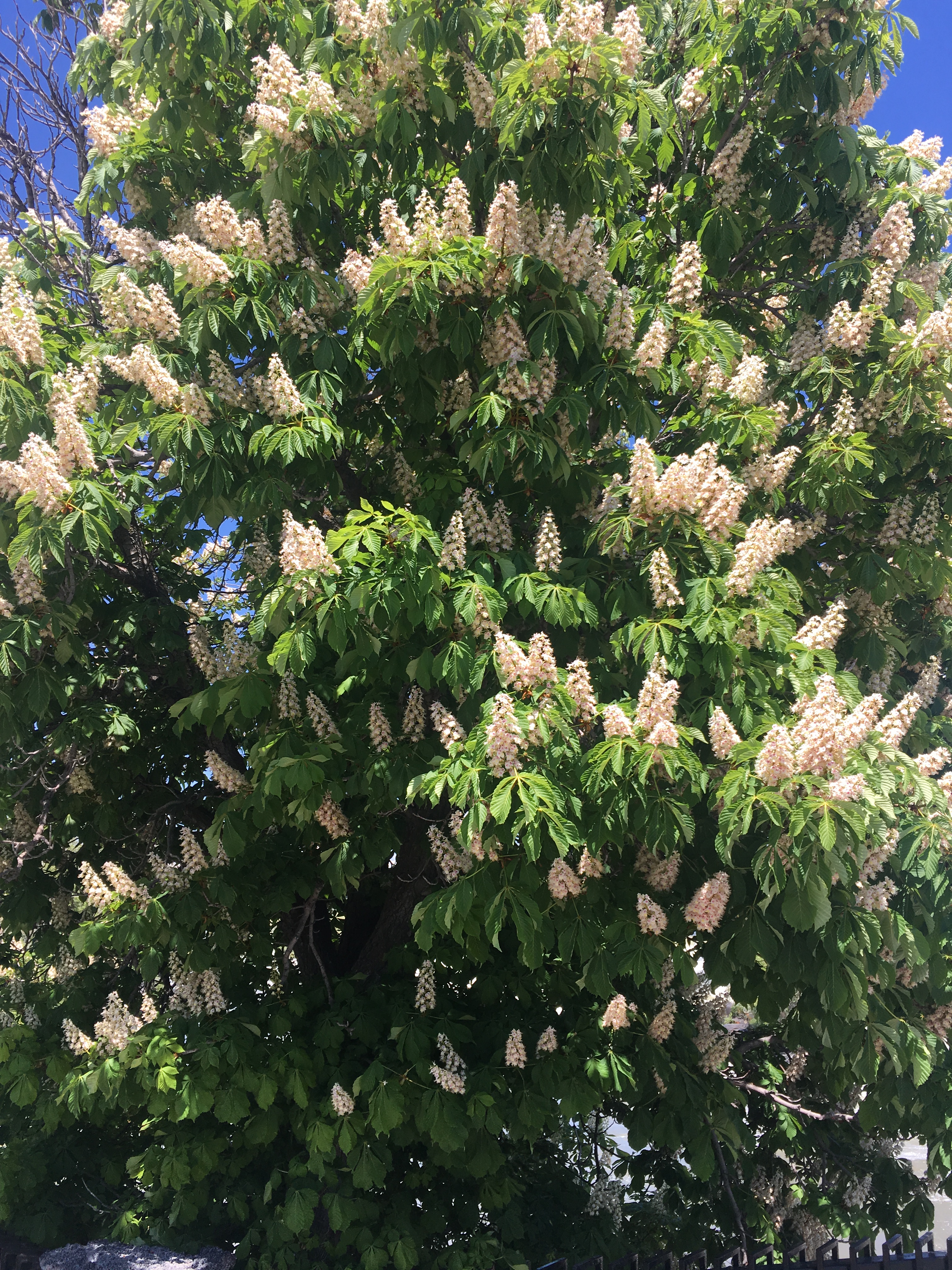 Oh, and all those blooming trees are now bearing fruit! We happened upon my favorite spring blooming tree this past week. You know, the “horse chestnut.” Sure enough, it has chestnuts all right.