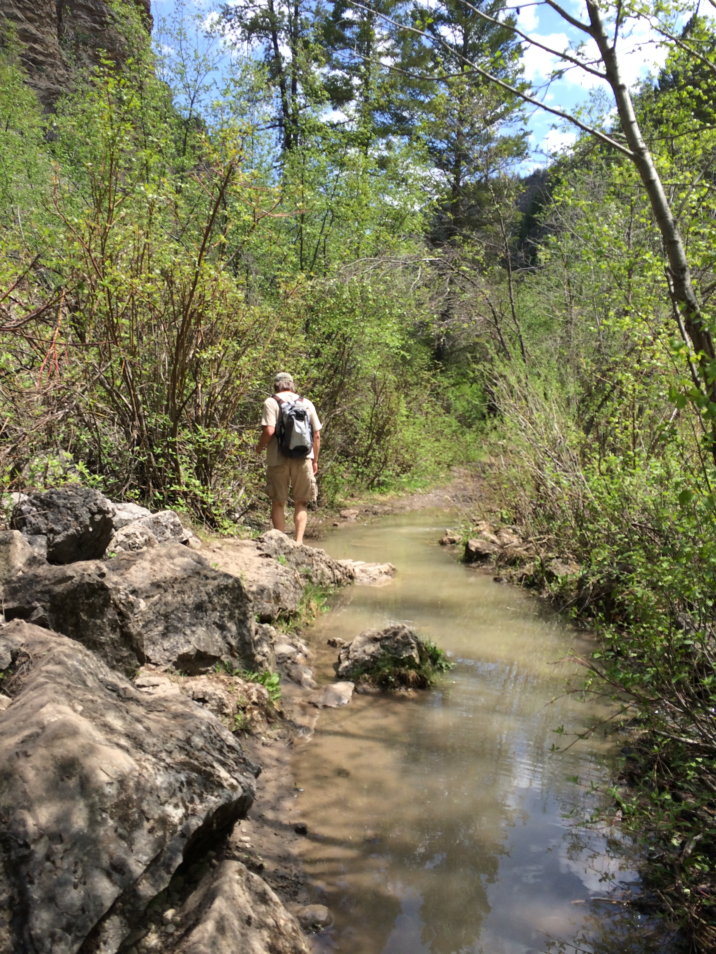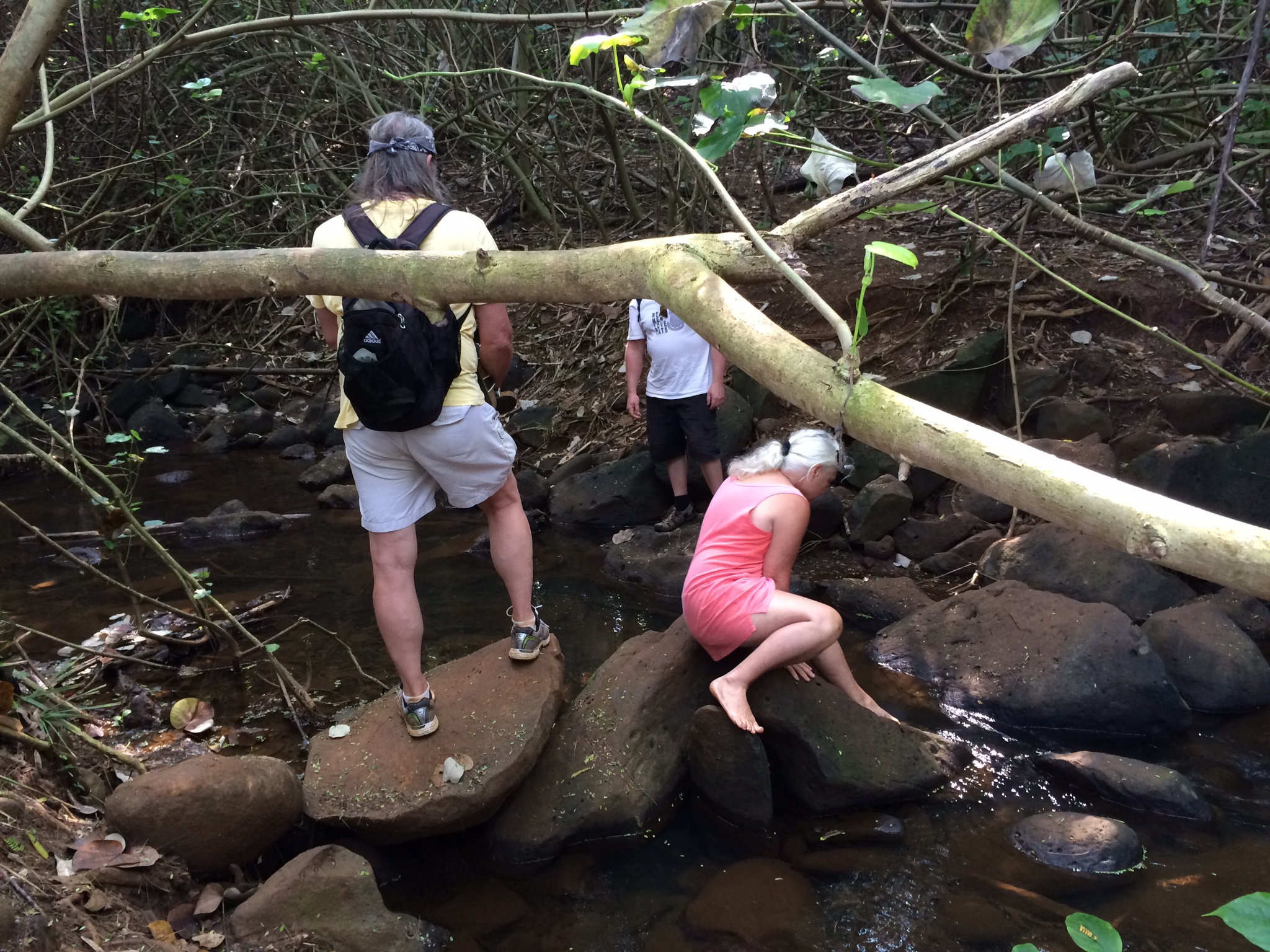 Yeah, well, just trying to keep the mood light. Stave off melancholy on our last day in Paradise. Take a minute to be grateful that we no longer have Eric leading us over streams, darting ahead across the rocks on his cat paws