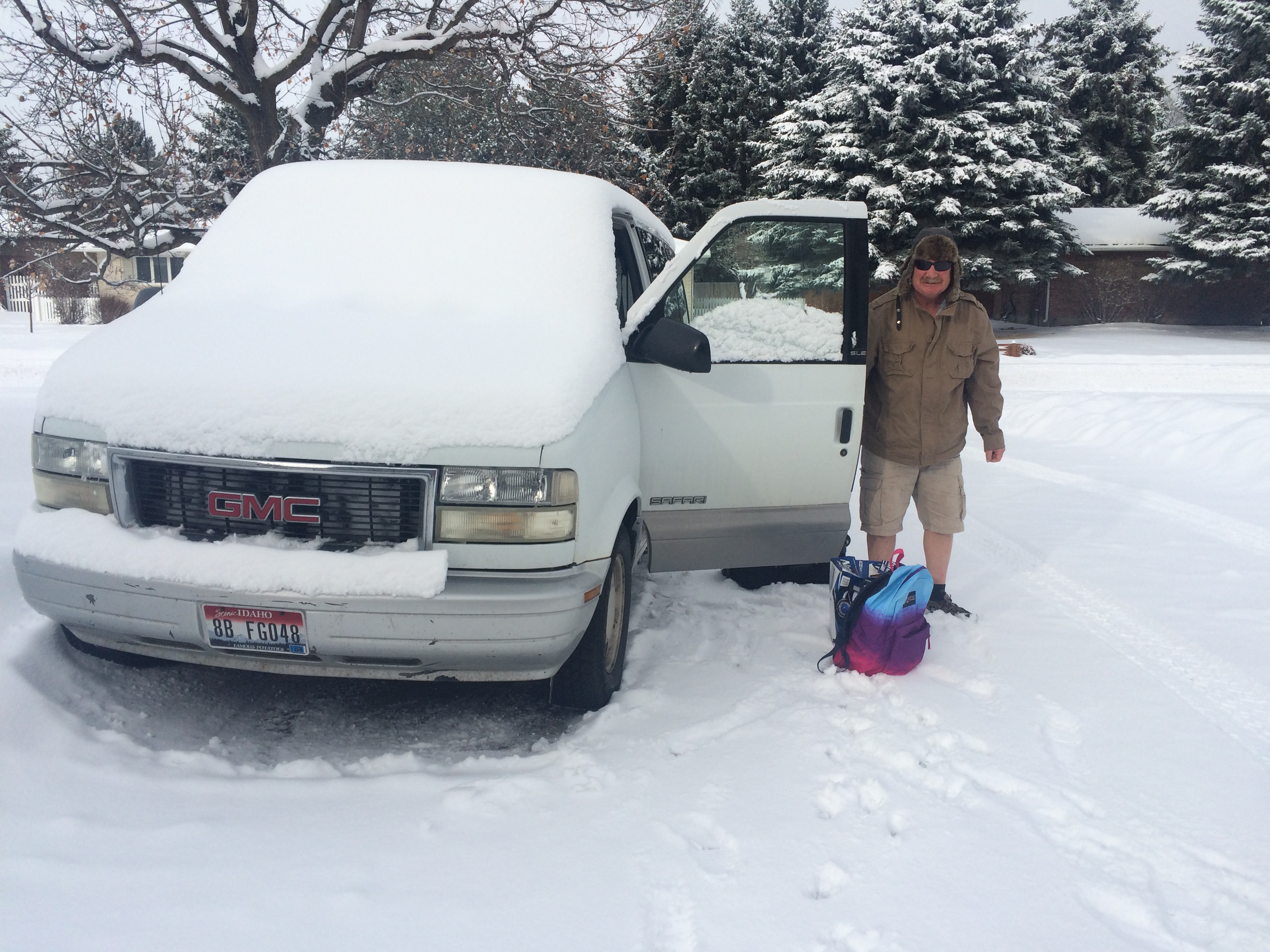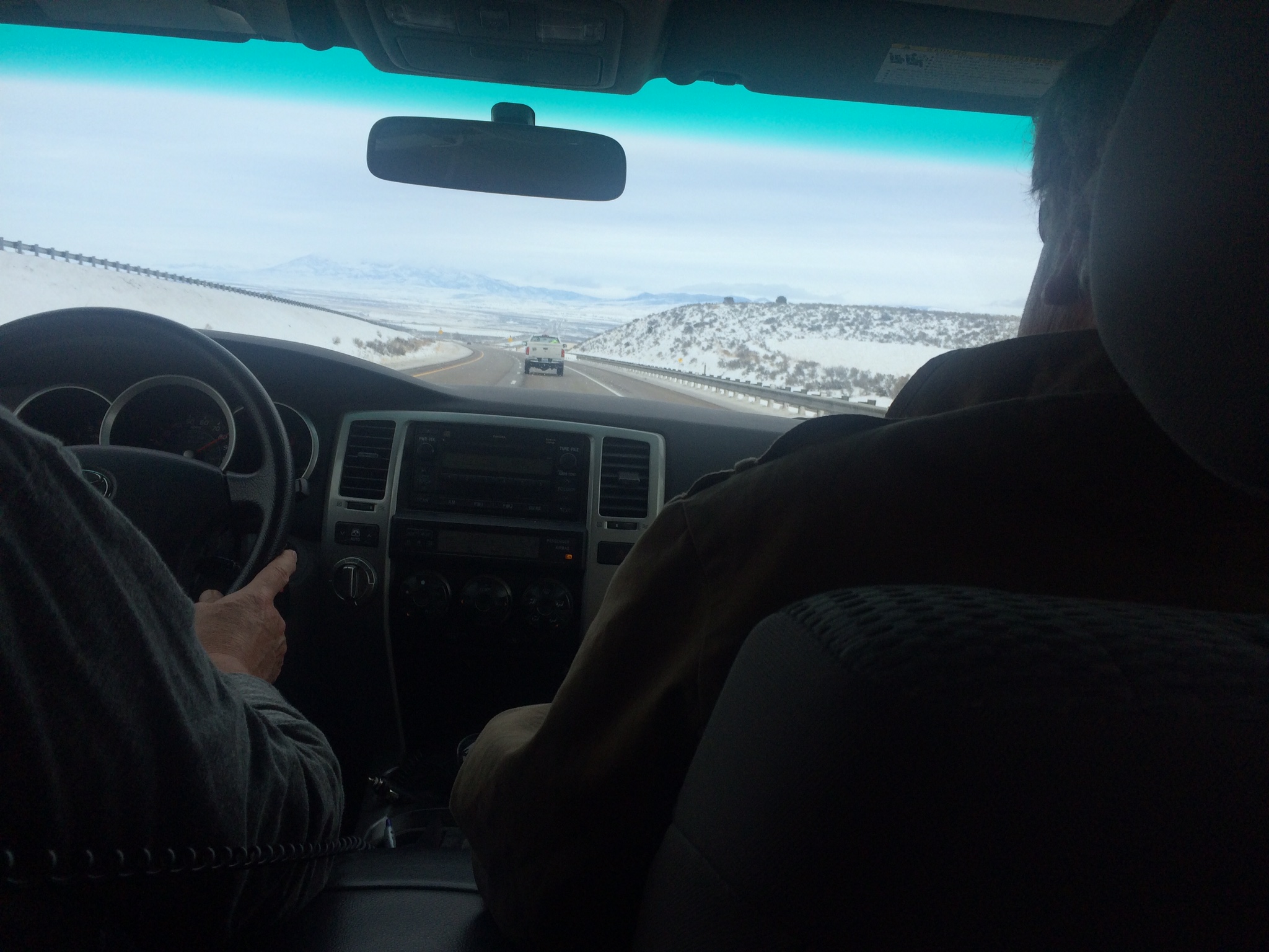 We’ve landed. Making the 4-hour drive from the airport north on I-15 to Idaho Falls now, with David at the wheel, Eric up front, me shivering in the back…