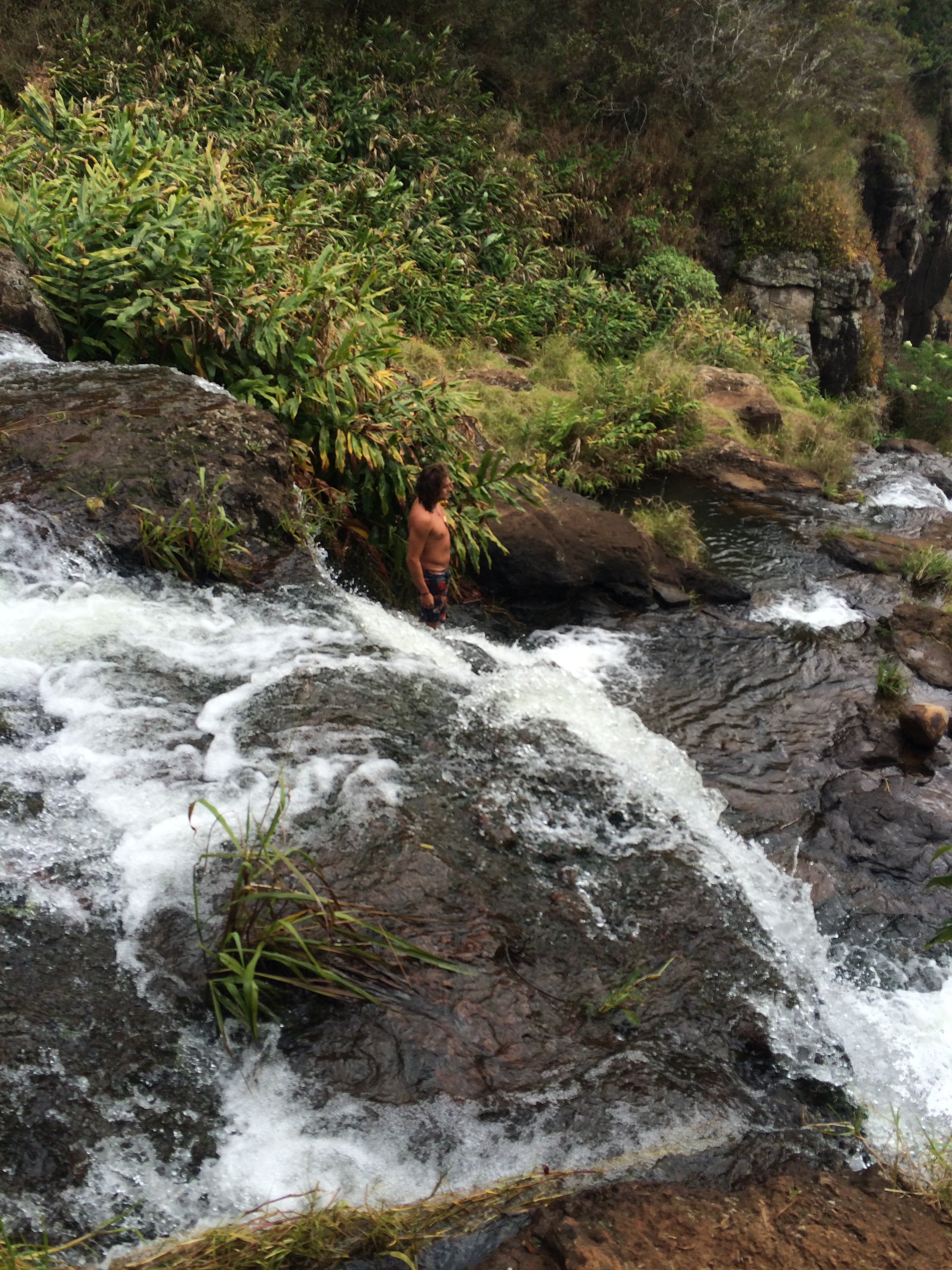 Yeah, well, just trying to keep the mood light. Stave off melancholy on our last day in Paradise. Take a minute to be grateful that we no longer have Eric leading us over streams, darting ahead across the rocks on his cat paws