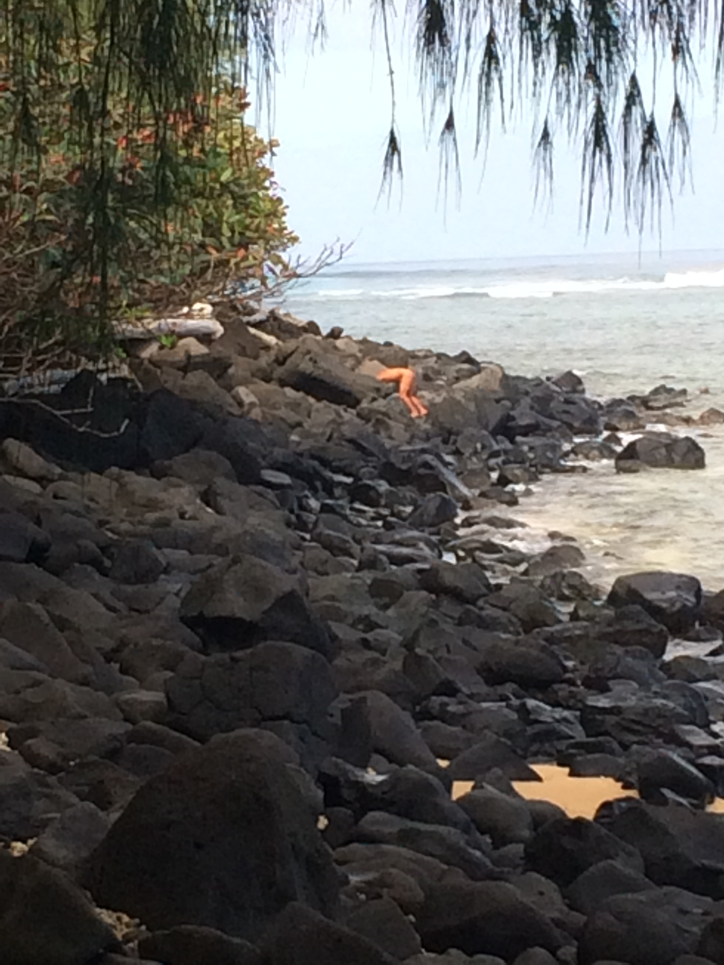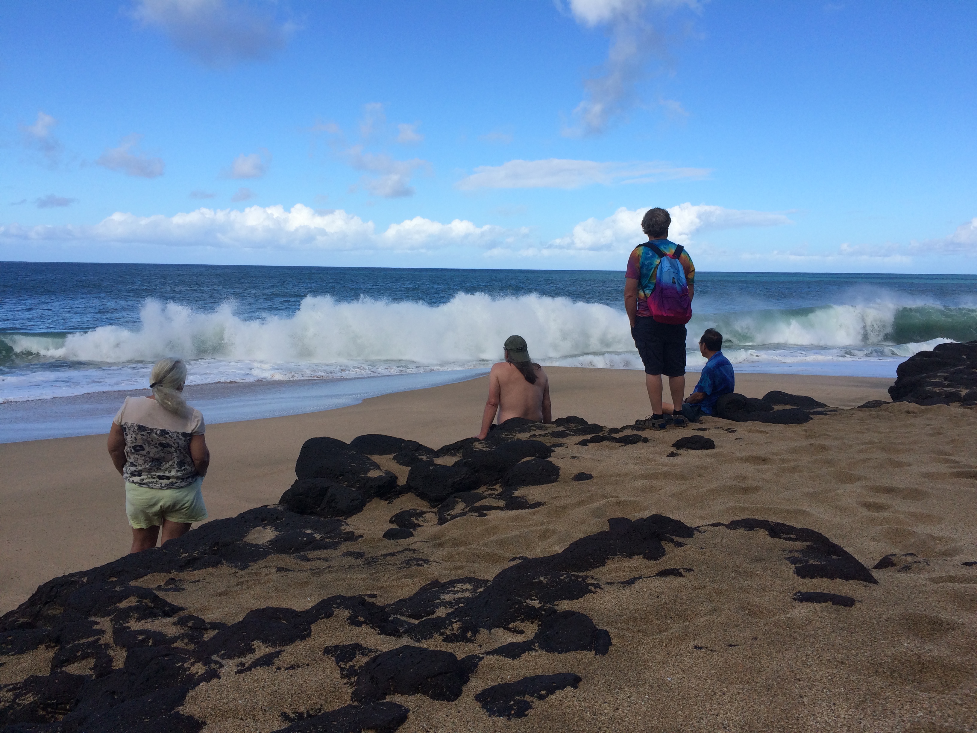 To give you a little perspective on what a Lumadie’i surf might look like, here’s a You tube video – ‘Big surf at Lumaha’i January 28, 2016.’ (This might be the same You tube video I shared in a previous blog – but it’s worth sharing again.) Let me just say, a lot of girls in string bikinis risked their young lives to bring you this video, which, I assume is not being taken by their parents: