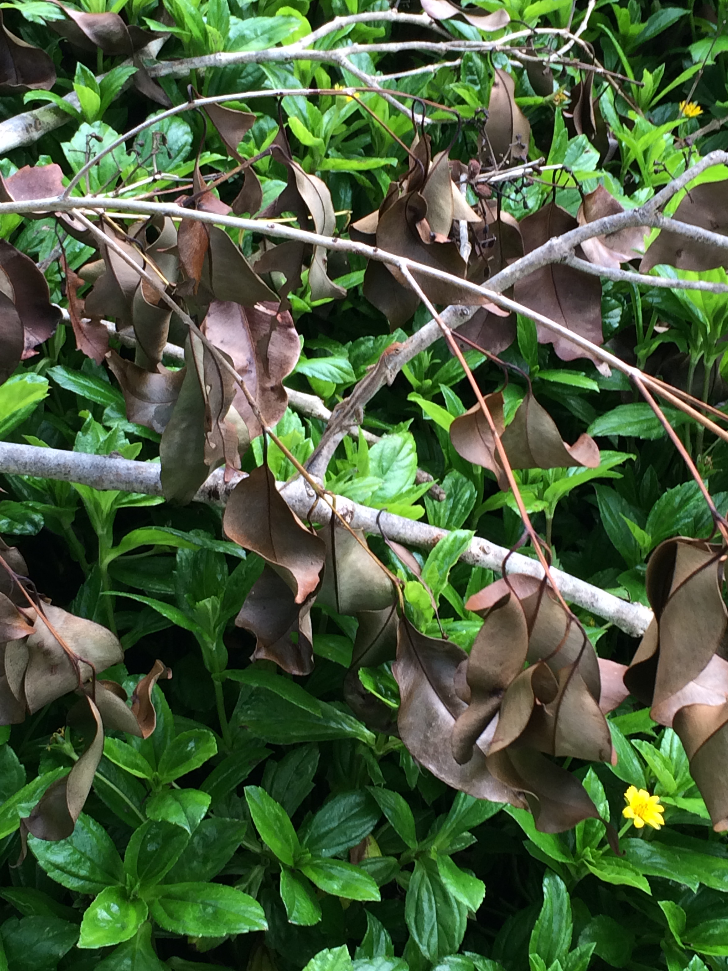 I leaped up onto a ledge when a rogue wave came crashing in – almost lost my sandals. Ran into a couple on the ledge. They allowed that it wasn’t a smart move to be standing on the beach today taking videos. (Smart for tourists, though, who may never make it back here?) Yeah, do you know what the locals call this beach? they said. LumaDIE’ i beach. Oh!