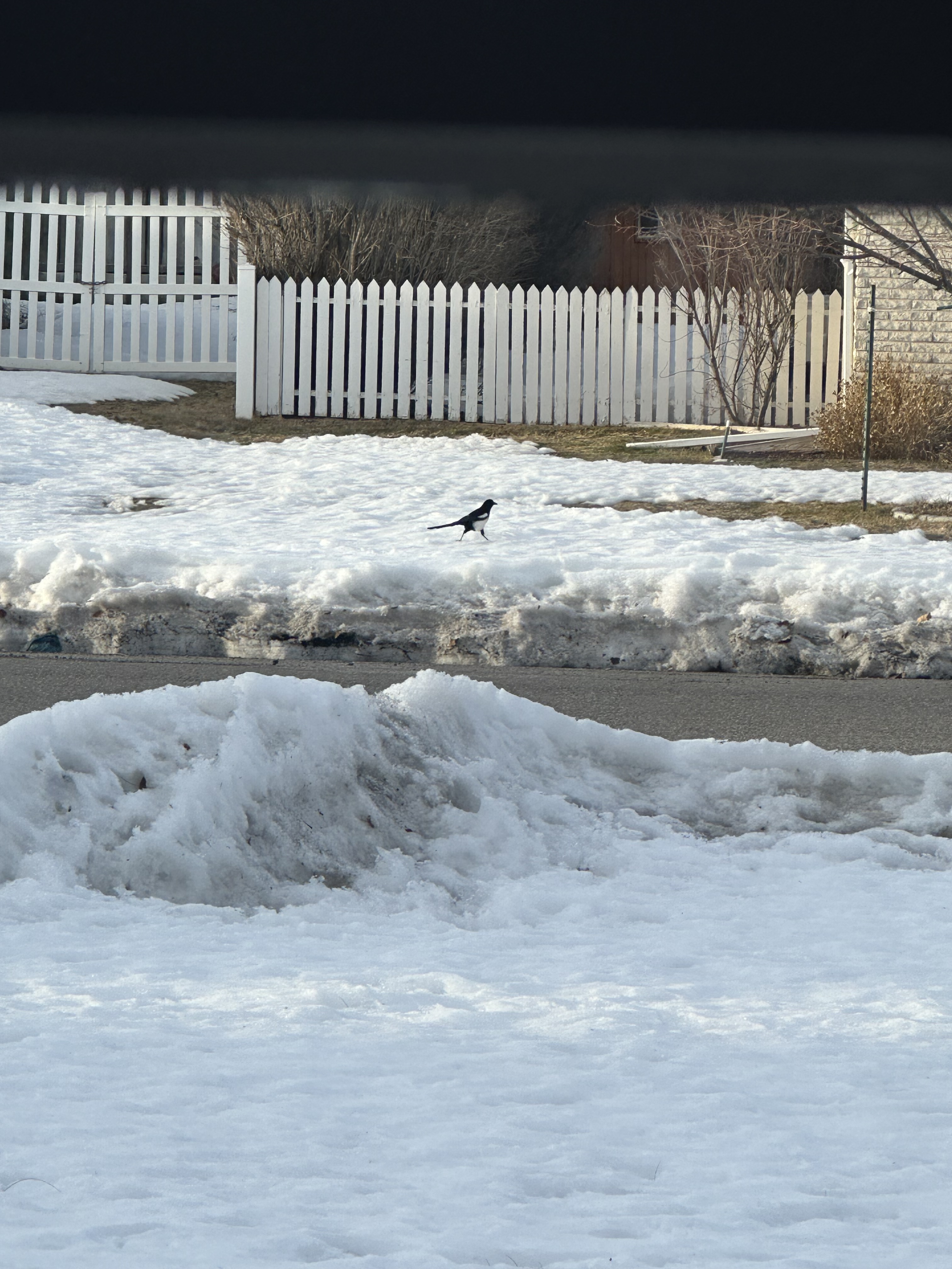 Here in southeast Idaho we’ve experienced one of the coldest, snowiest winters in 20 years. We still have mountains of snow in our front yard, accumulating since November with not much melting in between. We have been hopeful for signs of spring and by golly I saw one the other day when a magpie flew past our front window with a large sprig in its beak. Sure enough a pair of magpies are working feverishly on a 2-story magpie bungalow in our front may tree.