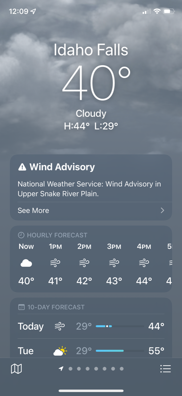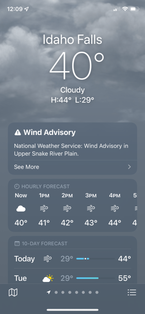 And what’s the current weather forecast for Idaho Falls? “A return of snow on the first day of spring.”