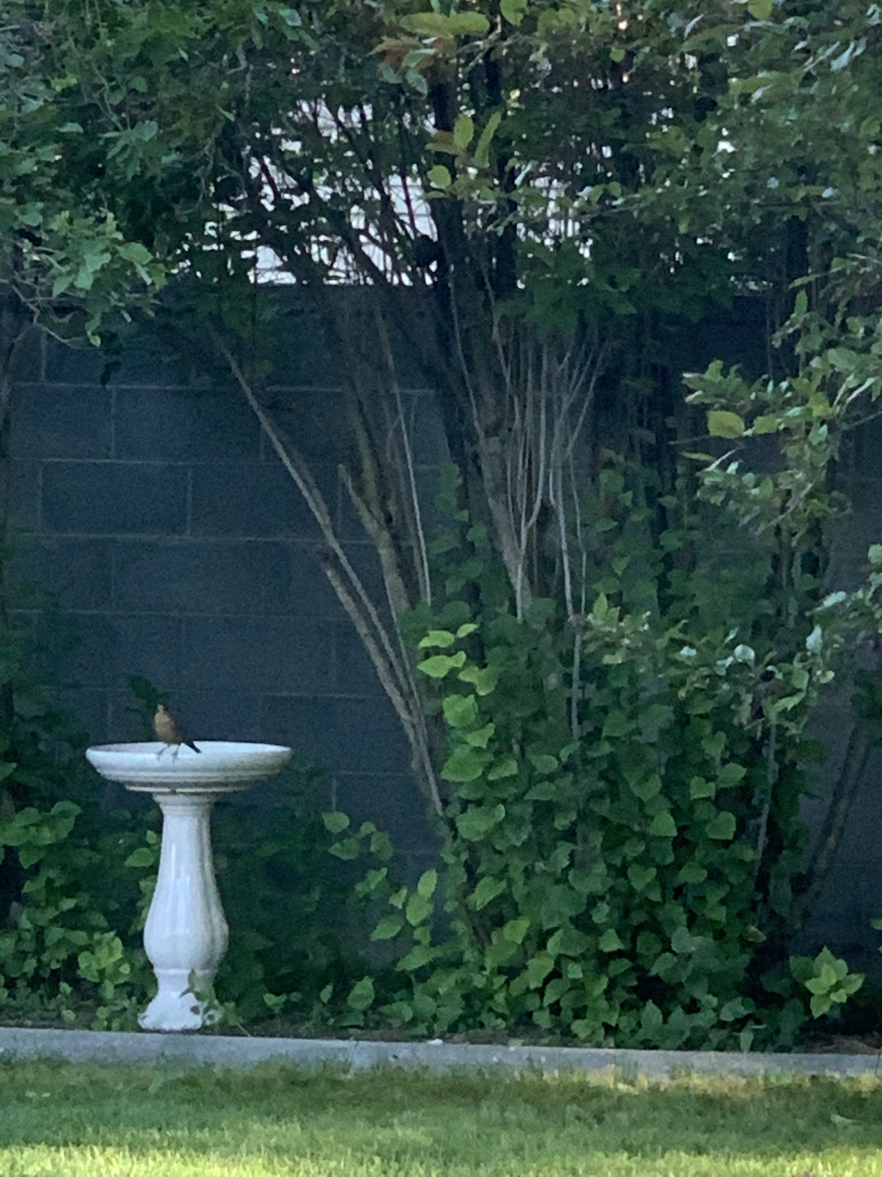 I honestly just couldn’t get too excited about it. But I did go and clean the birdbath. And sure enough, he discovered it. Every time we looked out and saw the robin we’d say, “Oh, look – there’s the Montana robin!”
