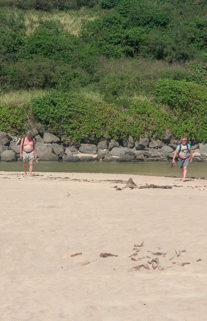Well, last weekend, a swimmer disappeared at Lumaha’i beach. There is no lifeguard there and if you read up about Lumaha’i you will be advised only to walk the beach, sunbathe, maybe dip your toe in the surf, especially a high surf, and most especially during winter months. I don’t want you to read my blog, and then decide to race to Lumaha’i and hop in the surf! Oh no!
