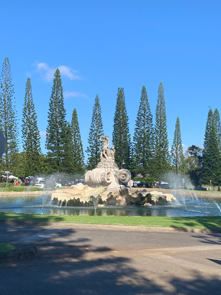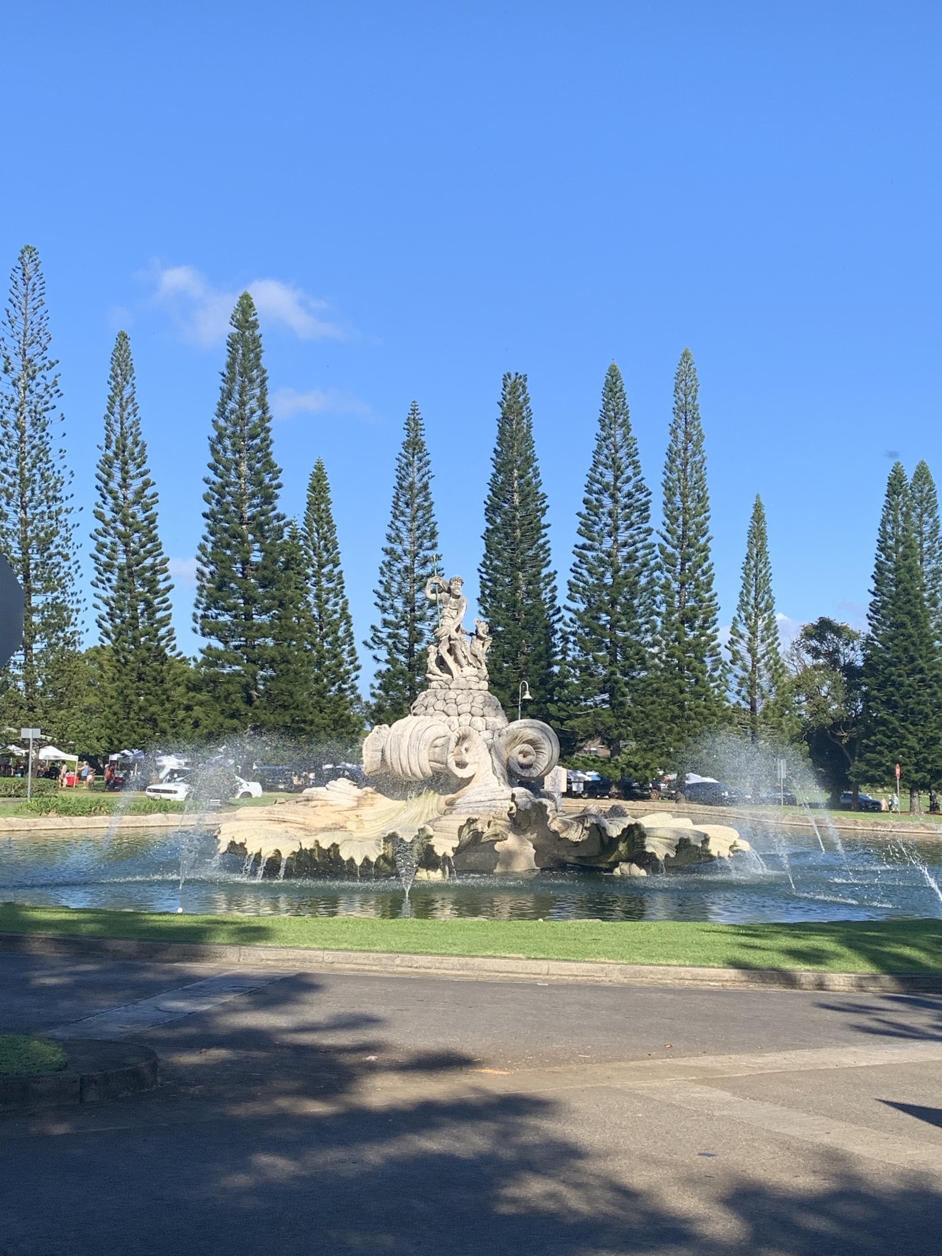 Built in 1989, the fountain was commissioned by Australian business tycoon Christopher Skase who purchased 7,000 acres in Princeville. Inspired by the “Fountain of Love” at Cliveden House in England, 12 artisans in Italy worked one year on a 900-ton piece of marble, resulting in the final 200-ton fountain which was shipped to Kauai in 11 containers. Check out this link for the full story: https://princevillefountain.com