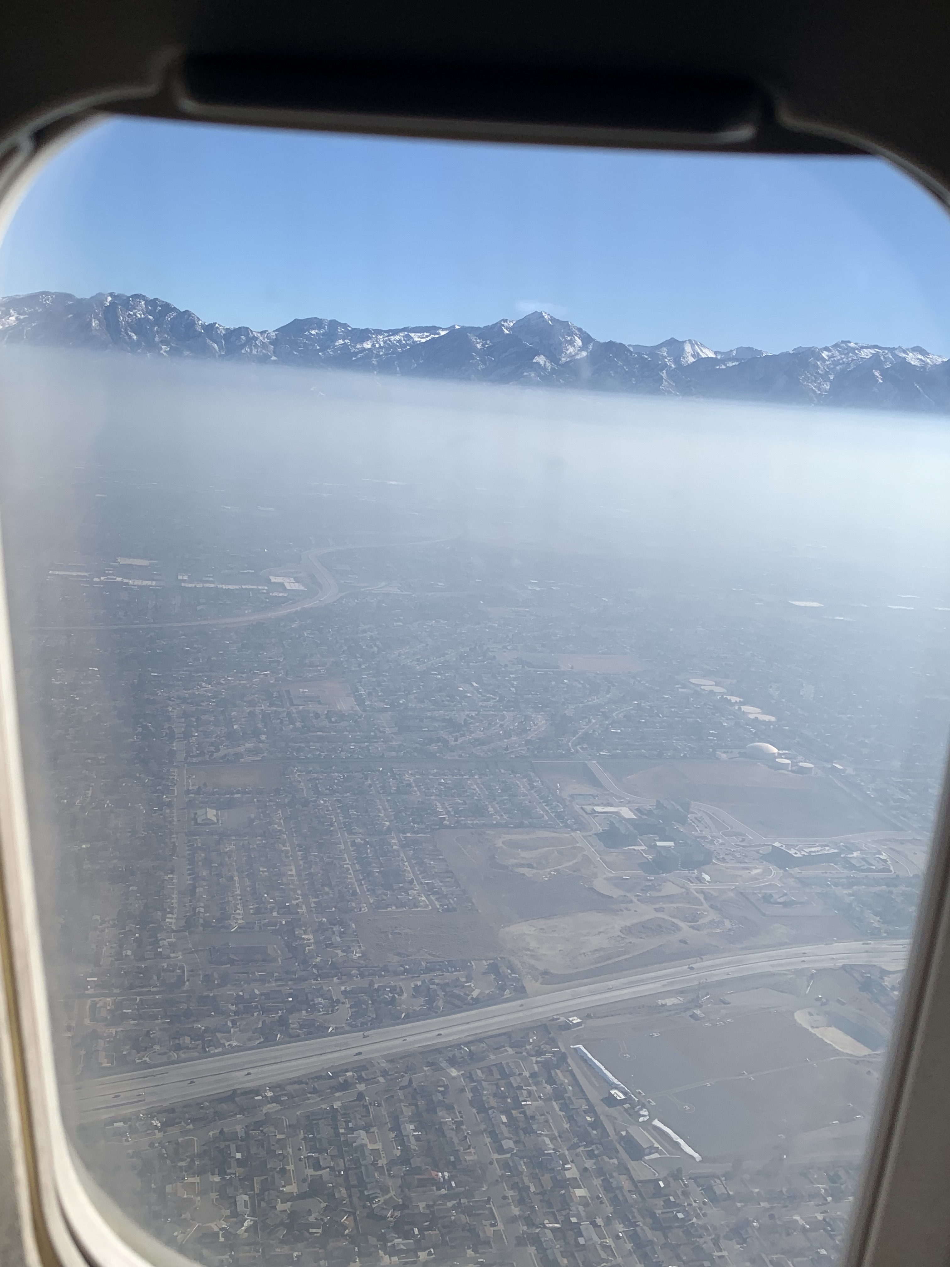 Yep. Now you see what a temperature inversion looks like. Warmer air rises and traps the colder air and smog closer to the ground. The steep walls of the mountains surrounding the Salt Lake Valley area also contribute to the inversions, which occur often in winter months.